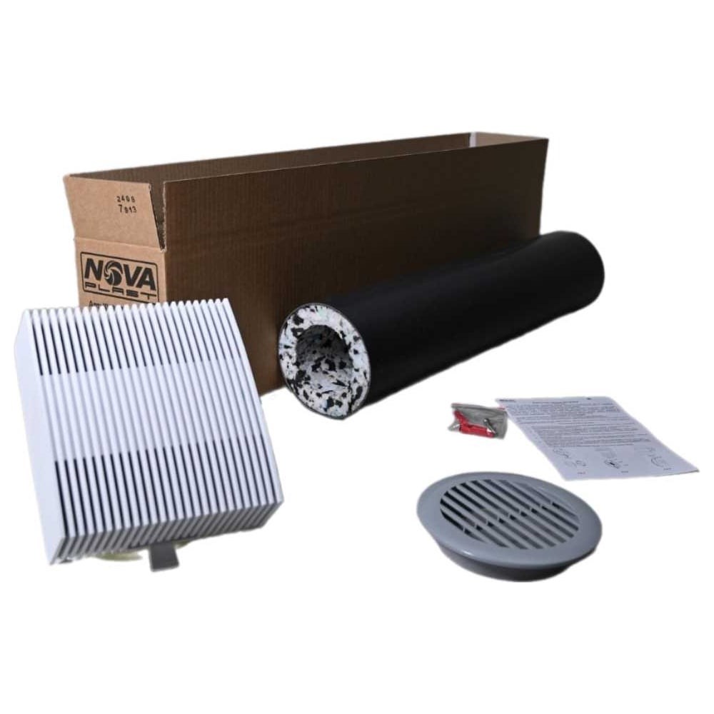 Стеновой шумозащитный клапан NovaSTYLE, комплектуется фильтром класса G-3, теплозвукоизолирующим стеновым каналом и внутренним корпусом, предназначен для осуществления нормативного воздухообмена в помещении, с контролем потока воздуха, в соответствии с СП 60.13330.2020 «Отопление, вентиляция и кондиционирование воздуха».Воздух, через наружную вентиляционную решетку, поступает в вентиляционный канал из ПВХ трубы диаметр 125 мм. Для теплозвукоизоляции вентиляционного канала используется материал устойчивый к микроорганизмам, плесени и грибам, толщиной 20 мм. Далее воздух проходит через плавно-регулируемые заслонки во внутренний корпус клапана и через фильтр класса G-3, поступает в помещение. Тем самым, осуществляется приток «свежего» воздуха, а воздух «отработанный» выходит через вытяжную вентиляцию из помещения. Клапан рекомендуется устанавливать на высоте не ниже 1.9 м от пола, для того, чтобы холодный воздух перемешивался с теплым.Материал внутреннего корпуса: АБС.Материал воздушного канала: ПВХ.Материал наружной вентиляционной решетки: АСА (атмосферостойкий).Монтаж: через отверстие в стене диаметром 132 мм.Теплозвукоизоляция внутреннего корпуса вентиляционного канала: сшитый пенополиолефин.Материал фильтра: ретикулированный пенополиуретан, класс фильтрации G3 (задерживает до 90% частиц, размером до 10 мкм).Расход воздуха при 10 па: 65м3/час.Размер внутреннего корпуса (ШхВхГ): 170х185х65 мм.Длина комплектного вентканала 500 мм.