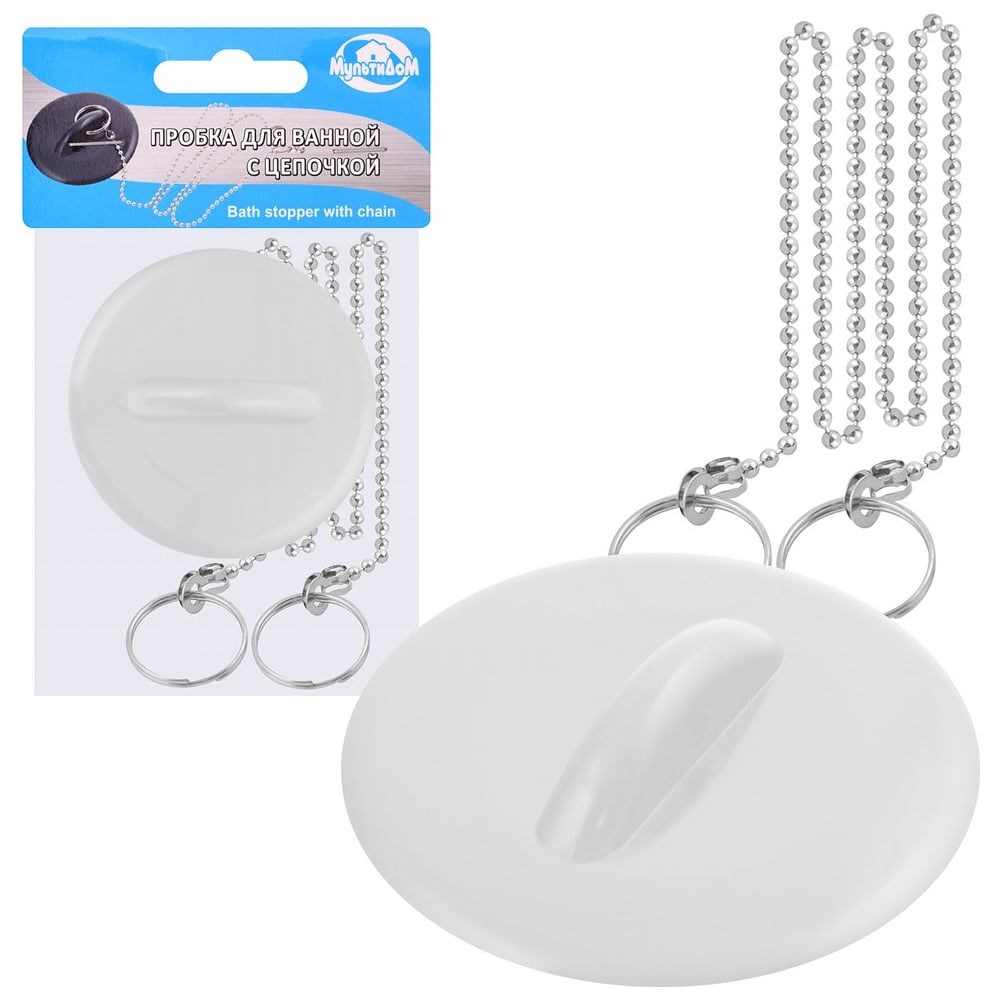 Пробка для ванной МУЛЬТИДОМ с цепочкой Уайт Россия NEW МГ34-5