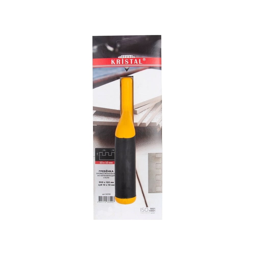 Профессиональная гребёнка KRISTAL 300х120мм, зуб 10х10 36550 предназначена для равномерного нанесения и распределения клеевого раствора на поверхность во время отделочных работ. Ручка выполнена из высокопрочного пластика с прорезиненной рукояткой, что обеспечивает надежный захват. Гребенка используется для монтажа толстых тяжелых плиток до 10 мм толщиной.