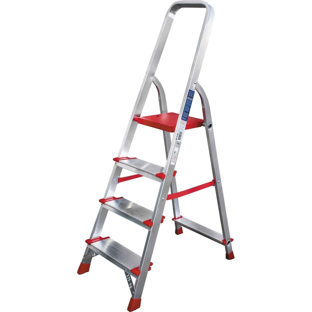 Профессиональная стремянка Новая Высота NV3117, 1x4 ступени 130 мм 3117104 предназначена для интенсивного использования. При небольшом весе модель имеет повышенную прочность и надёжность. Она легко устанавливается и обеспечивает высокий уровень комфорта. Ступени и стойки выполнены из прессованных алюминиевых профилей увеличенного сечения, что обеспечивает надежность конструкции и продолжительный срок службы. Рифлёная поверхность ступеней способствует безопасному подъёму и спуску. Прочное крепление ступеней к боковинам 6 заклёпками придаёт конструкции высокую устойчивость. Опорные наконечники из прочного пластика обеспечивают устойчивое положение стремянки на поверхности. Практичность и внимание к каждой детали гарантируют безопасность работы на любой высоте.