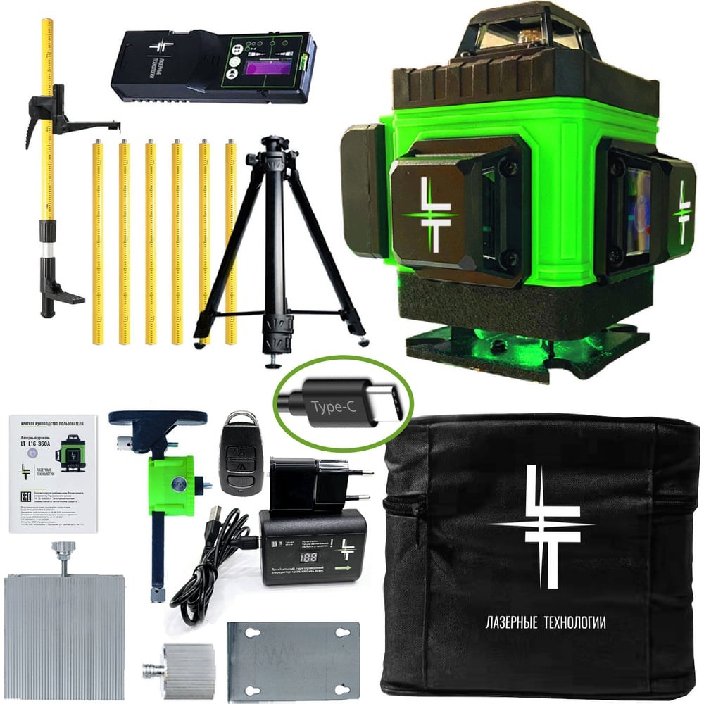 Профессиональный лазерный уровень LT L16-360A + штатив 4.8 м + тренога 1.5 м усиленная + приемник (отражатель) лазерного луча L16-360A/4.8м/1.5м-УС/ОТР выстраивает 4 плоскости в 360 градусов (в круговую): 2 вертикальные плоскости с пересечением под прямым углом и 2 горизонтальные линии снизу и сверху уровня. Работает от Li-ion батареи 6000 мАч с зарядным устройством. Особенности: до 8 часов работы при постоянном свечение луча; лучи включаются как с сенсорных кнопок на корпусе устройства, так и с пульта дистанционного управления; зеленый цвет луча лучше виден на свету и менее вреден для глаз; противоударный и влагозащитный кейс для переноски устройства. Модель проходит трехступенчатый контроль проверки качества сборки на заводе-производителе и инспекционный контроль приемки товара.