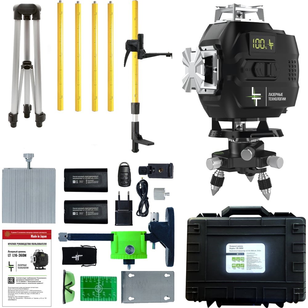 Профессиональный лазерный уровень LT L16-360М + штатив с треногой 3.6м L16-360M/3.6м+ выстраивает 4 плоскости в 360 градусов (в круговую): 2 вертикальные плоскости 360 градусов с пересечением под прямым углом 90 градусов, 2 горизонтальные линии 360 градусов снизу и сверху уровня. Нижний горизонт идеально подходит для работ по заливки полов и стяжки. Особенности: до 8 часов работы при постоянном свечение луча лучи включаются как с сенсорных кнопок на корпусе устройства, так и с пульта дистанционного управления зеленый цвет луча лучше виден на свету и менее вреден для глаз при помощи приемника (отражателя) лазерных лучей (приобретается отдельно) можно работать в солнечную погоду противоударный и влагозащитный кейс для переноски устройства Все уровни проходят трехступенчатый контроль проверки качества сборки на заводе-производителе и инспекционный контроль приемки товара. Калибровка устройств производится на заводе с помощью специального оборудования, сертифицированного по международным стандартам и только специалистами самого высокого уровня допуска.