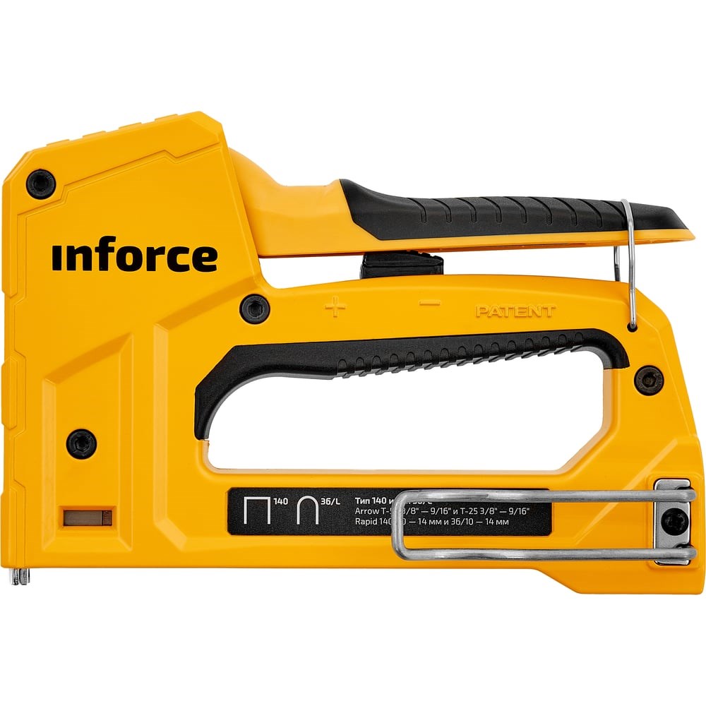 Профессиональный степлер 6 в 1 Inforce 06-14-07 представляет собой инструмент механического типа, который применяется на производстве мебели. Корпус выполнен из алюминия, поэтому является устойчивым к механическим воздействиям и коррозии. Подходящий тип скоб - 140/G/11/57; 53/А; 36/L; 47/F/055/049/300/J/SK50; P.