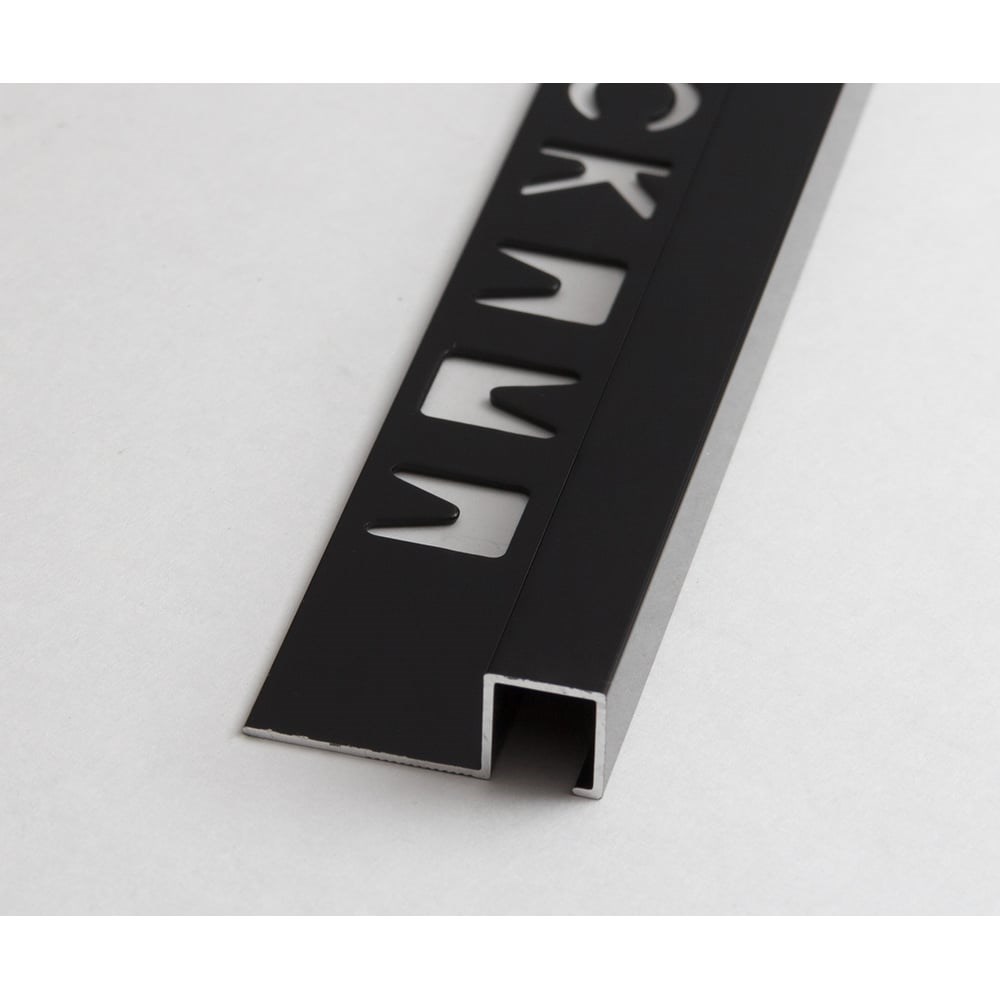 Окантовочный алюминиевый П-образный профиль. Может служить как бордюр вставка для декорирования керамической плитки, либо, по прямому назначению завершающим профилем для плитки. Способ окрашивания - анодирование, т.е. под воздействием реагентов красящий раствор приникает внутрь алюминия, соответственно покрытие довольно стойкое. Цвет черный полированный, имеет глянцевую поверхность.
