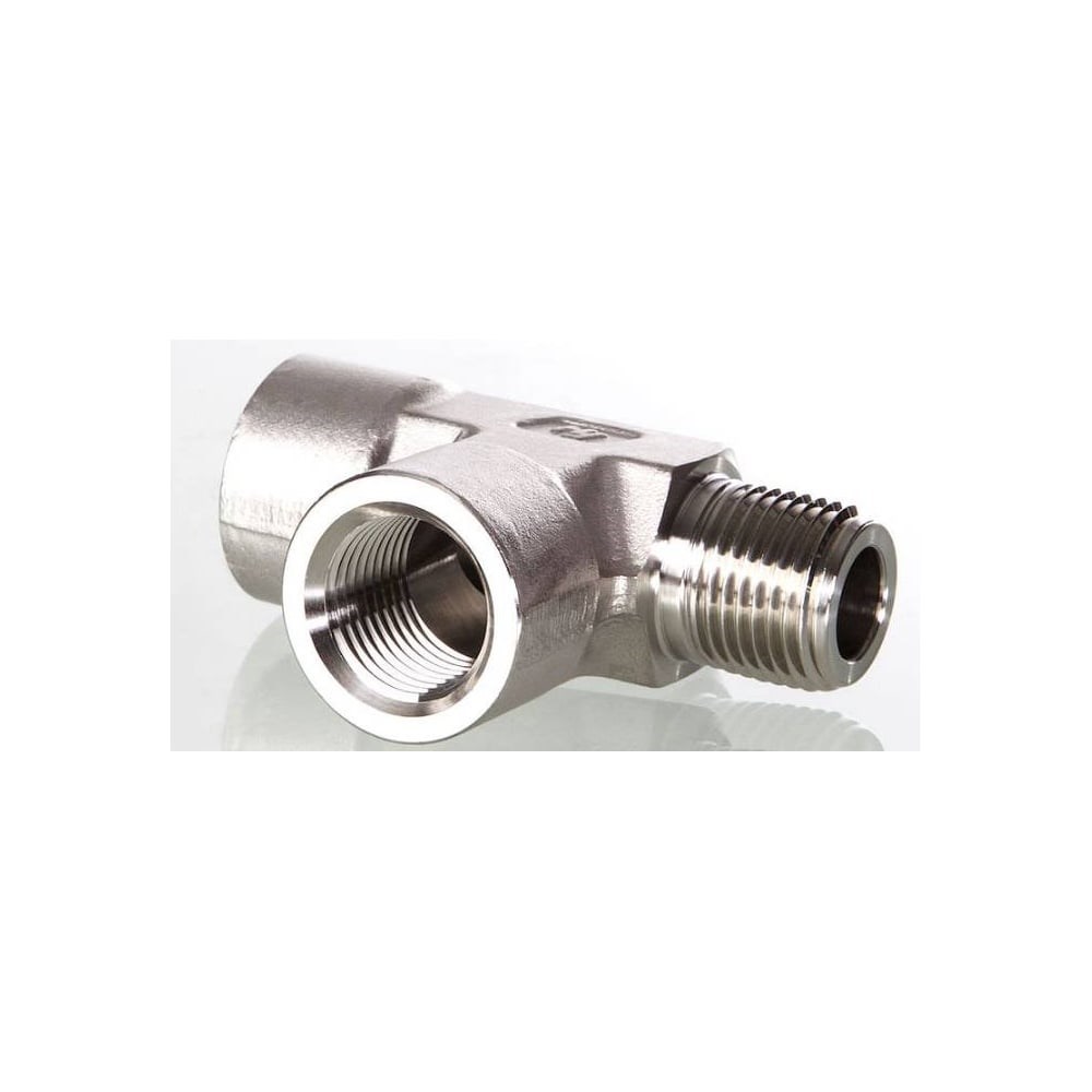 Проходной тройник из нержавеющей стали с внутренней и наружней резьбами Hy-Lok npt 1/4, материал - нержавеющая сталь ss316 H-SRT-4N