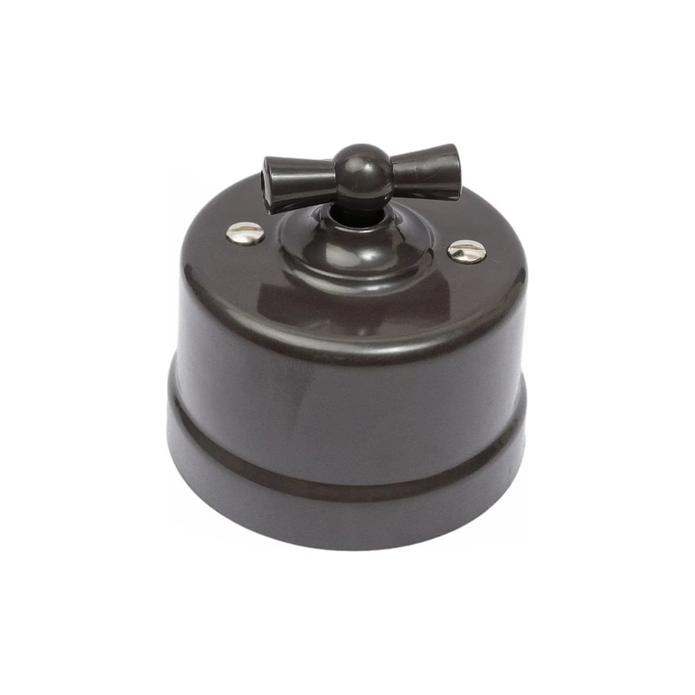 Это проходной двухпозиционный выключатель, позволяющий управлять освещением из двух или более точек. Отличный выбор для лестничных маршей, длинных коридоров, спален и больших помещений, где требуется включение и выключение света с разных мест.Благодаря глубокому коричневому цвету, выключатель гармонично вписывается в классические и ретро-интерьеры. Прочный корпус из качественного пластика обеспечивает устойчивость к механическим повреждениям и долговечность.