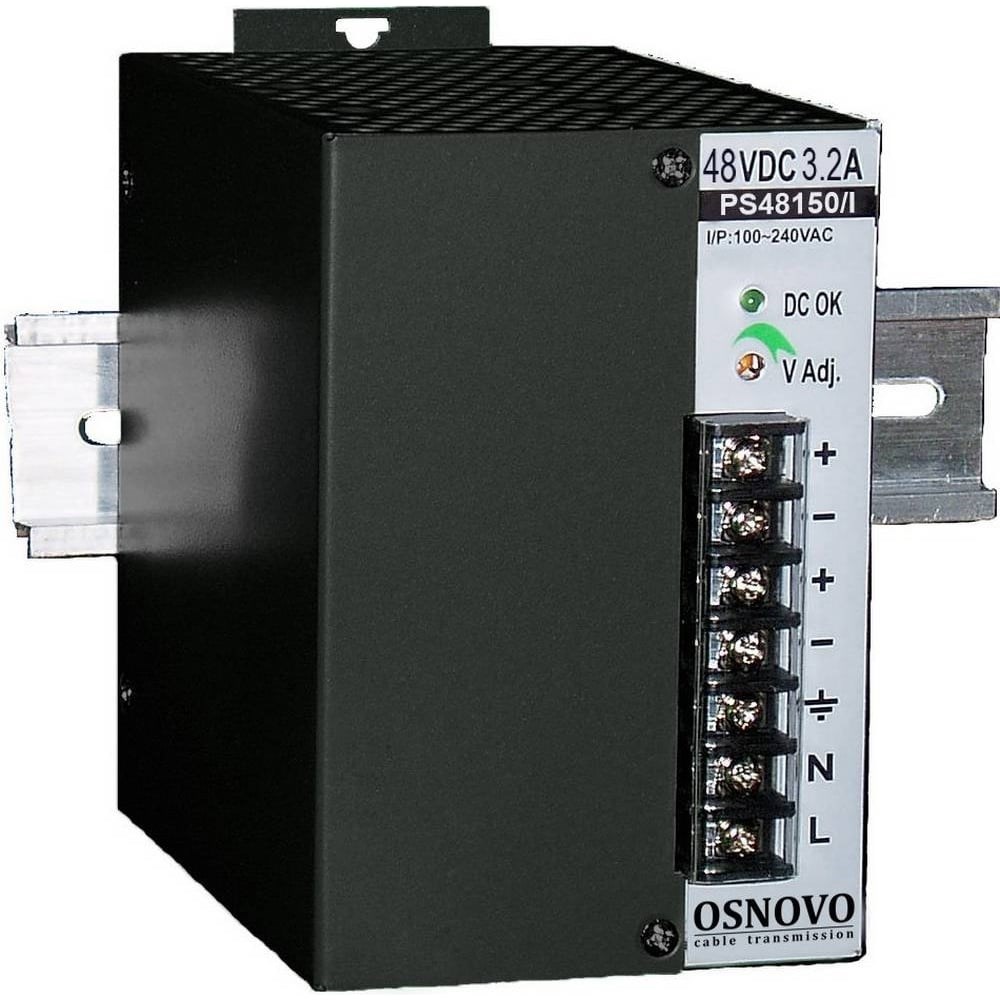 Промышленный блок питания. DC48V, 3.2A (150W). Диапазон входных напряжений: AC195-265V. КПД: 83%. Регулировка выходного напряжения в диапазоне 45-53V. Защита от короткого замыкания, перенапряжения и перегрузки. Конвекционное охлаждение. Монтаж на DIN-рейку или стену. Размеры (ШxВxГ): 75x110x121мм. Рабочая температура: -40...+50°C.