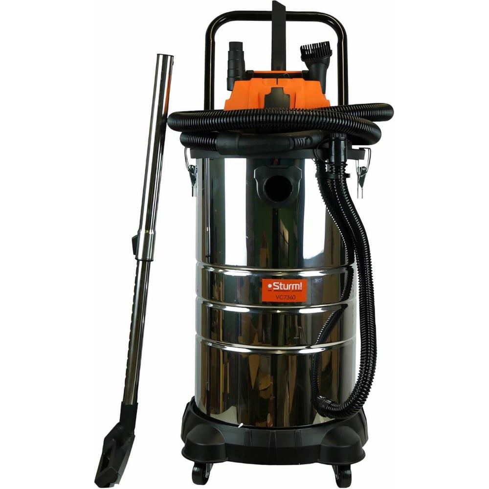 Промышленный пылесос Sturm VC7360 предназначен для уборки помещений, а также для принудительного удаления продуктов пиления, строгания, фрезерования и т.п. из рабочей зоны. Он важен для поддержания чистоты в гараже, мастерской, удаления мусора во время ремонта в квартире или на даче. Данная модель отличается встроенной розеткой с функцией синхронизации, что позволяет подключать электроинструменты мощностью до 2000 Вт и согласовывать с ними работу пылесоса. Бак из нержавеющей стали объемом 60 л устойчив к коррозии и предельно долговечен. Продолжительности эксплуатации также способствует фильтр тонкой очистки HEPA который, как защищает двигатель от пыли, так и содействует чистоте уборки. В свою очередь фильтр возможно очищать автоматически, что особенно полезно при работе с мелкой фракцией мусора. Пригодность к влажной уборки и сбору жидкости делают модель универсальной в широком спектре применения. Для хорошего охвата очищаемого пространства есть сетевой кабель длинной 5 м, а в интересах легкого перемещения пылесоса предусмотрены надежные и удобные колесика.