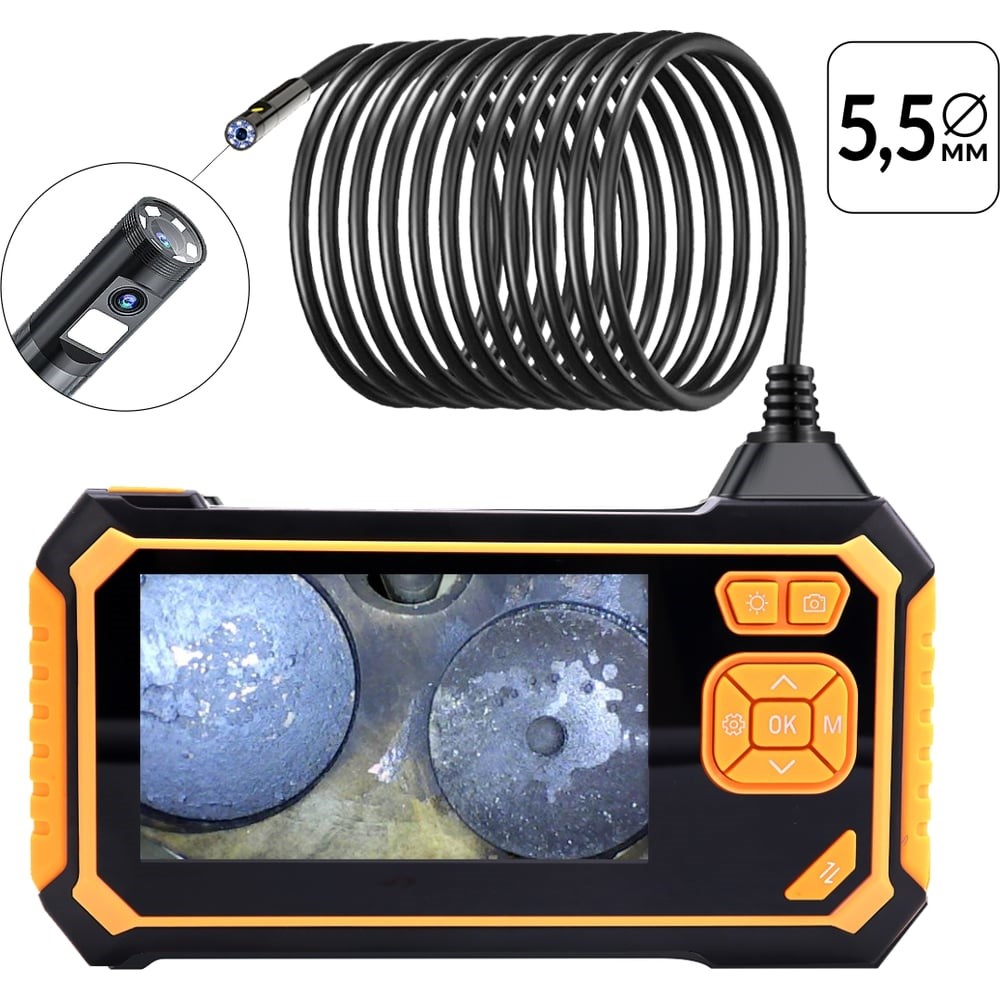 iCartool IC-V117 промышленный видеоэндоскоп в противоударном корпусе с двумя камерами и LCD экраном диагональю 4,3‘'. Вторая камера ориентирована на 90 градусов относительно основной. Это позволяет решить основную проблему специалистов СТО по контролю состояния впускных и выпускных клапанов ДВС. Наличие второй камеры дает возможность отказаться от использования эндоскопов c дорогостоящими управляемыми зондами. Обе камеры делают фото в разрешении Full HD 1920х1080, что позволяет выявить мельчайшие повреждения исследуемых узлов и поверхностей. Время работы до 3х часов от одной зарядки. Зонд, диаметром 5.5 мм и длиной 3 м имеет влаго и пылезащиту IP67. В комплект входят 3 насадки. Насадки крепятся к зонду при помощи резьбового крепления, что позволяет избежать падения насадок с зонда и расширяет возможности видеоэндоскопа (крючок для работы с электропроводкой, магнит для извлечения металлических предметов из труднодоступных мест).Особенности:Две камеры - фронтальная и боковая, ориентированная под углом 90°Зонд полужесткий, с эффектом памяти формы, диаметром 5.5 ммЦветной LCD дисплей 4,3‘' имеет угол обзора 360°Фокусное расстояние фронтальной камеры от 2 до 10 смФокусное расстояние боковой камеры от 2 до 5 смLED подсветка из 8+1 белых светодиодов с 3-мя режимами яркостиПоворот изображения на экране, цифровой зумВстроенный аккумулятор объемом 2600 мАч позволяет непрерывно работать до 3х часовДля сохранения полученных результатов используется TF карта памяти (опция)