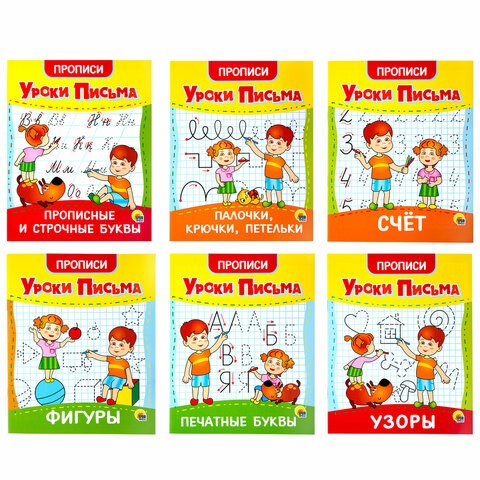 Прописи для малышей "УРОКИ ПИСЬМА, 3-5 лет", КОМПЛЕКТ 6 шт., 165х205 мм, 16 стр., ПП