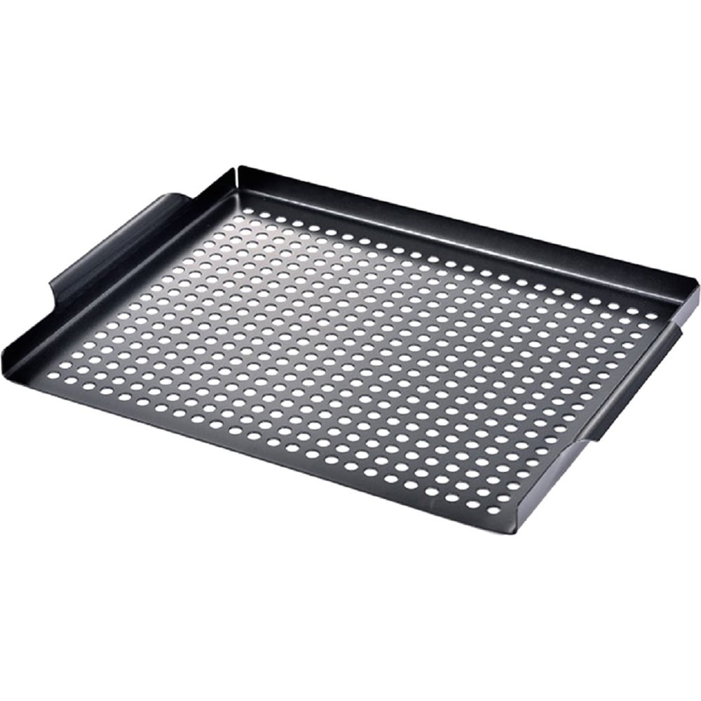 Перфорированный противень из нержавеющей стали — отличный выбор для приготовления овощей, рыбы и других деликатных блюд. Благодаря множеству отверстий на дне, излишки жидкости эффективно удаляются, что позволяет продуктам равномерно запекаться и приобретать аппетитную румяную корочку.Прочный и долговечный аксессуар не подвержен коррозии, легко очищается и не впитывает запахи. Отсутствие антипригарного покрытия делает его безопасным для использования при высоких температурах и позволяет применять любые кухонные инструменты без риска повреждения поверхности.Идеально подходит для любителей здорового питания и тех, кто ценит удобство в приготовлении блюд.