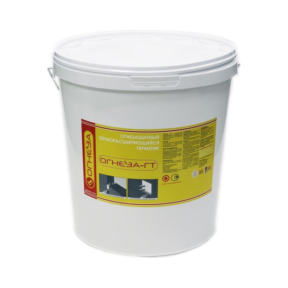 Противопожарный терморасширяющийся герметик ОГНЕЗА ГТ ведро 20 кг, цвет серый 105040 обладает огнестойкостью до 180 минут. Обеспечивает эффективную защиту от огня ограждающих конструкций в местах стыков, проходов кабелей или швов. Вещество обладает высокой адгезия к металлу, кирпичу, бетону, дереву, плитке и другим строительным материалам. Не содержит асбеста. Необходимо использовать индивидуальные средства защиты.