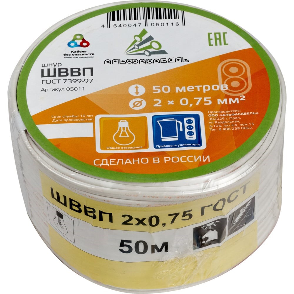 Провод ШВВП АЛЬФАКАБЕЛЬ 2х0,75 мм ГОСТ 50 м 05011