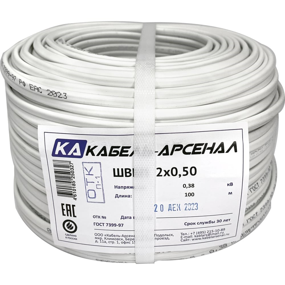 Провод ШВВП Кабель-Арсенал 2x0,50 ГОСТ - 100 м KARS-55332