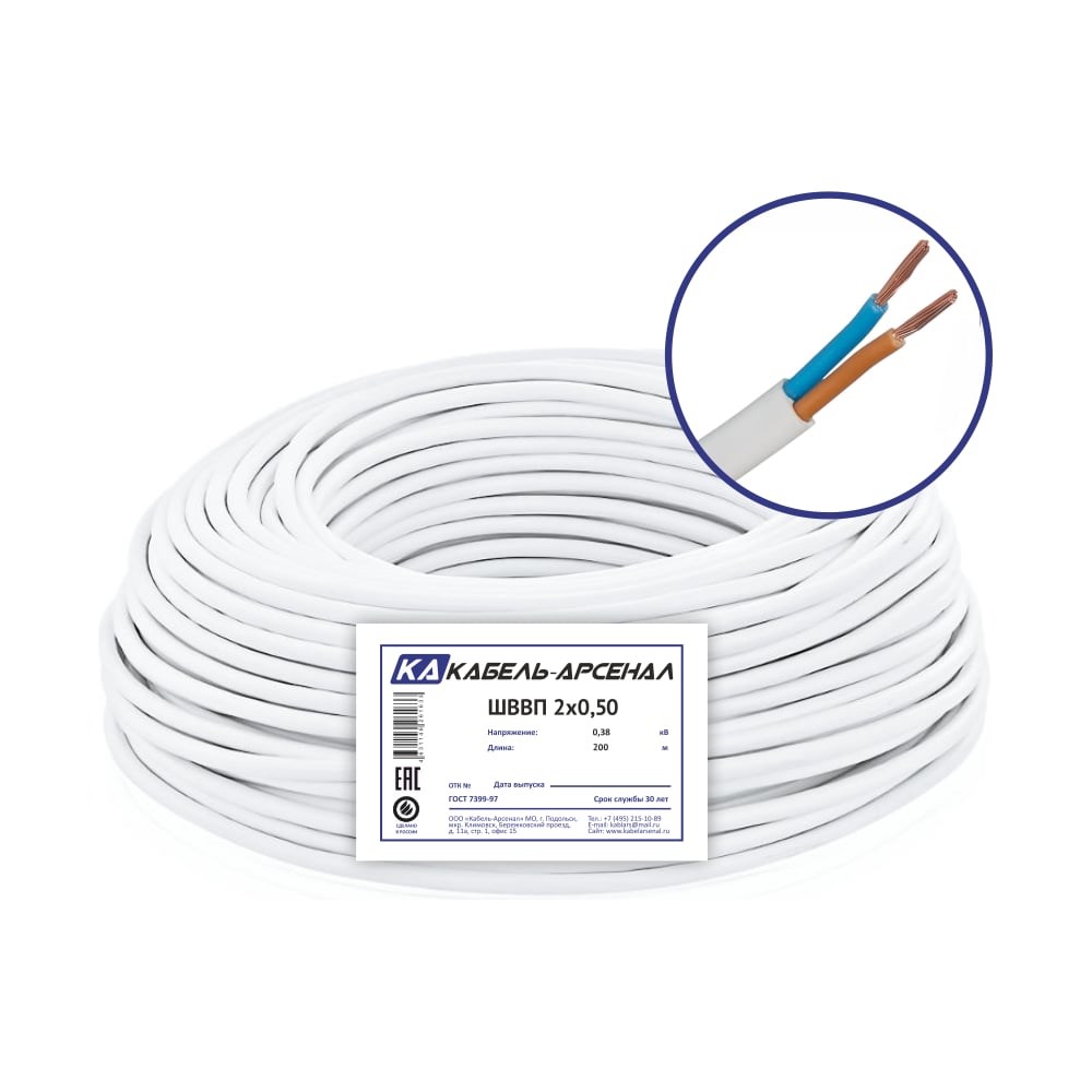 Провод Кабель-Арсенал ШВВП 2x0,50 ГОСТ 200 м KARS-40164