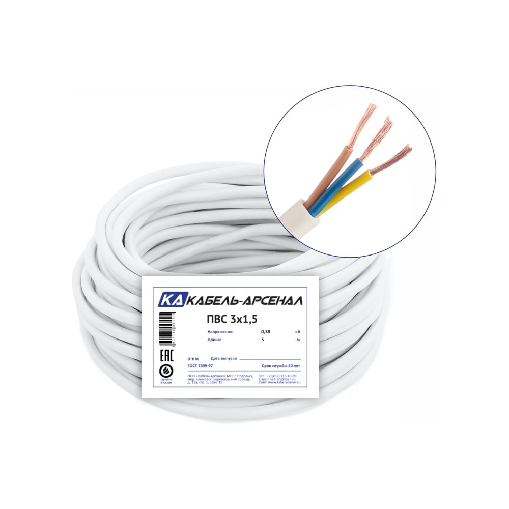 Провод Кабель-Арсенал ПВС 3x1,5 ГОСТ DIY 5 м KARS-54646
