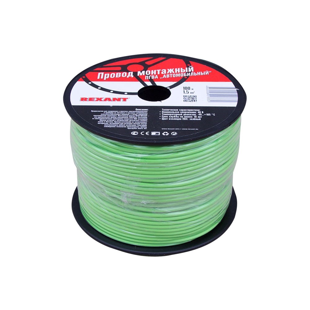 Провод ПГВА REXANT предназначен для гибкого соединения автотракторного электрооборудования и приборов с номинальным напряжением до 48 В, изготавливается для автомобильной проводки и элементов питания и управления. Состоит из многожильной токопроводящей жилы с поливинилхлоридной изоляцией. Расшифровка провод ПГВА: П — Провод Г — Гибкий В — Изоляция из поливинилхлоридного пластиката А — Автотракторный Технические характеристики: Номинальное напряжение: до 48 В Электрическое сопротивление изоляции на длине 1 км: не менее 3,0 мОм Изоляция жилы: из ПВХ пластиката Расцветка провода имеет сплошную расцветку Класс гибкости: 3 Минимальный радиус изгиба: не менее 10-кратного значения минимального размера провода Предельно допустимая рабочая температура: –50...+70 °С Срок службы: 15 лет
