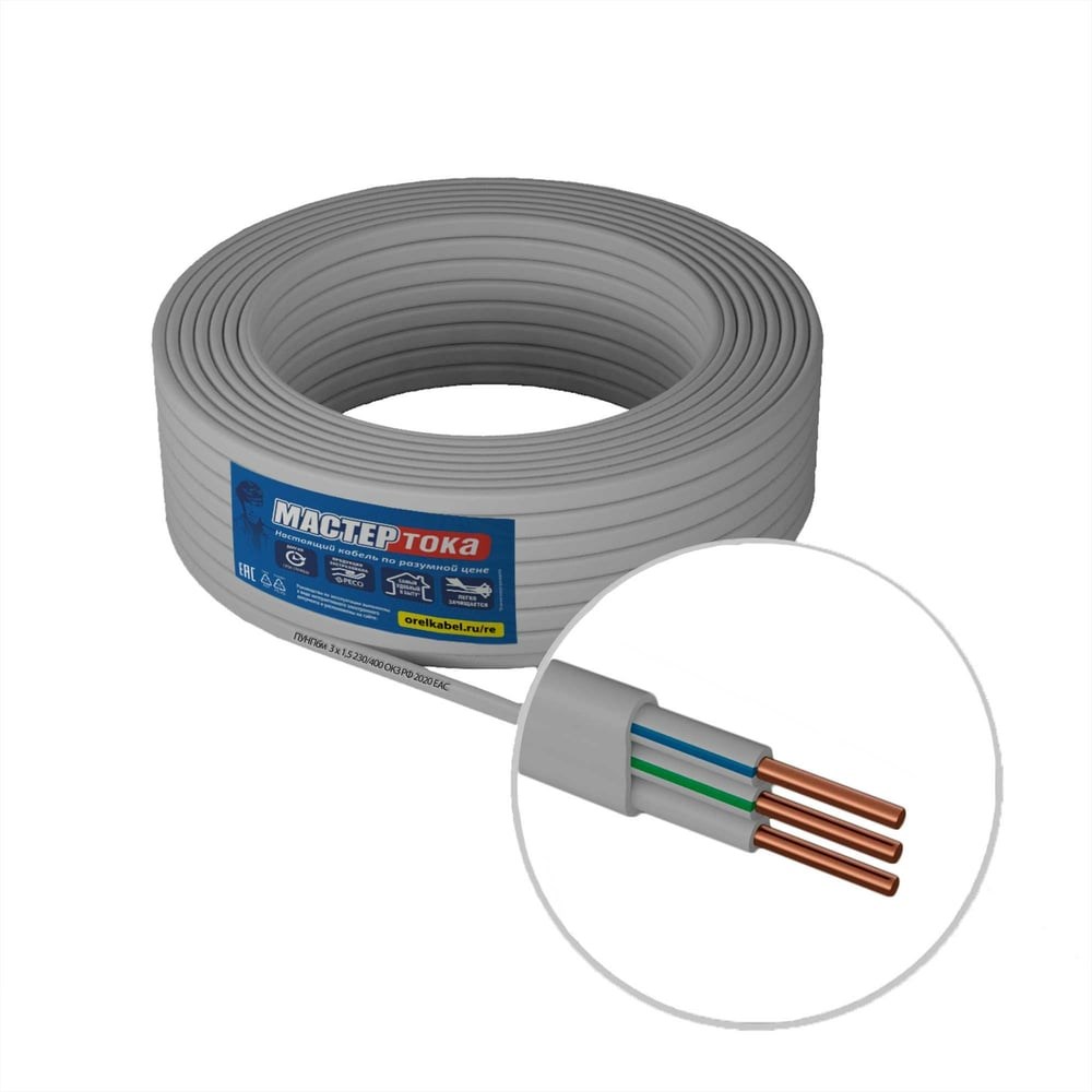 Провод ПУНПбм Мастер Тока 3х1.5 белый 100м МТ1433