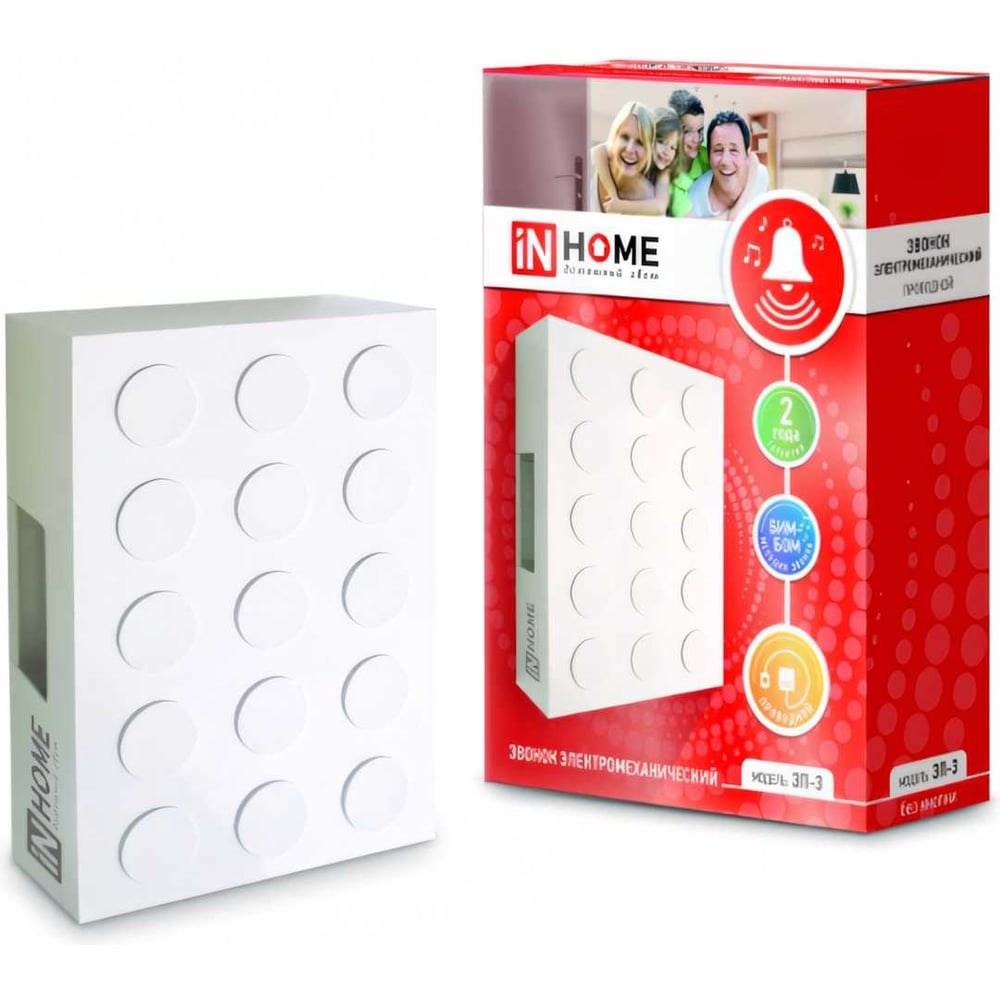 Проводной звонок IN HOME ЗП-3 Бим-Бом, электромеханический, белый 4690612013268
