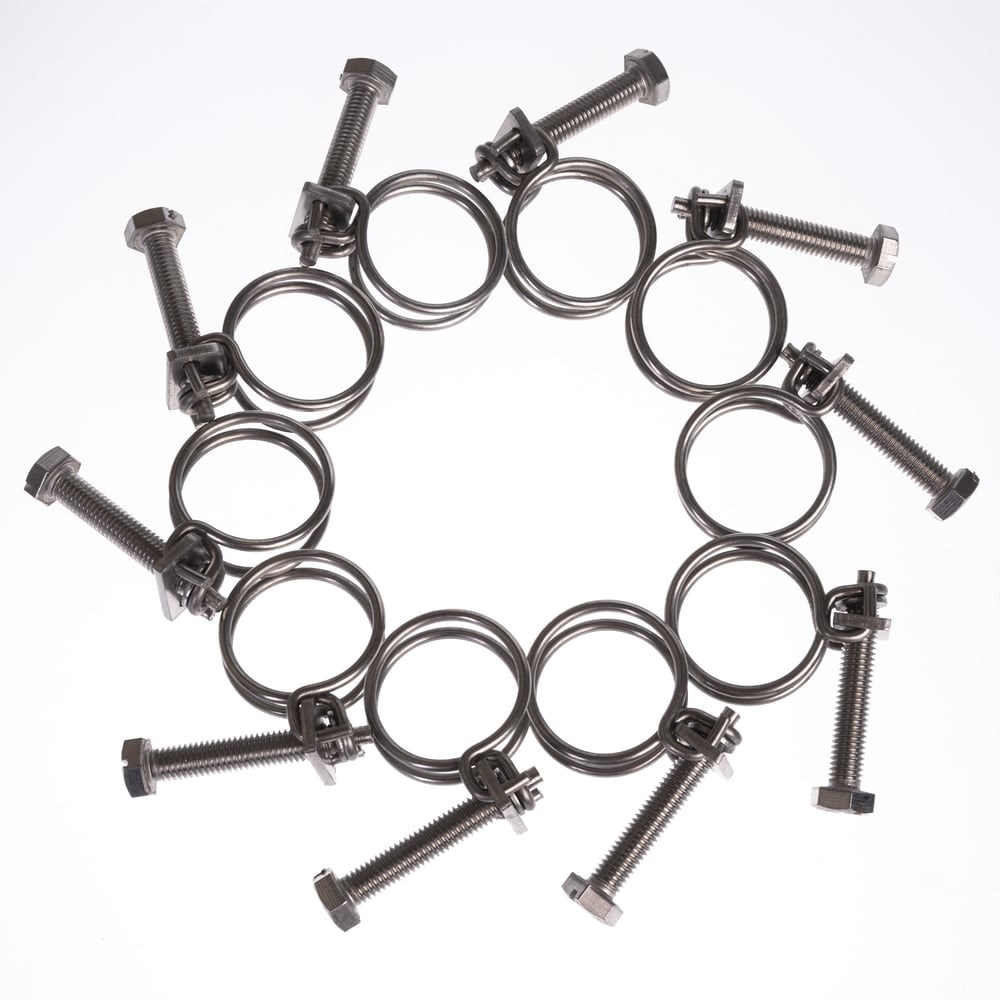 Хомут HG проволочный 28-32 мм, 10 шт 4962046 предназначен для крепления и герметизации соединений шлангов, труб и патрубков, работающих в условиях постоянной вибрации. Применяют в машиностроении, строительстве, сельском хозяйстве и пищевой промышленности. Рекомендуется для жестких и толстостенных рукавов и шлангов. Хомут спиральный проволочный выполнен из нержавеющей стали в форме двух витков упругой спирали с винтовым замком. Зафиксировать хомут можно при помощи гаечного ключа.