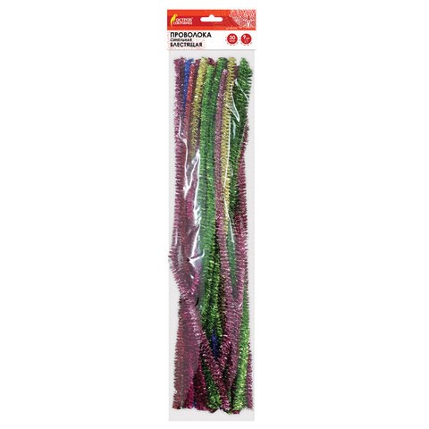 Проволока синельная для творчества "Блестящая", 6 цв., 30 шт., 0,9х30 см, ОСТРОВ СОКРОВИЩ, 661532