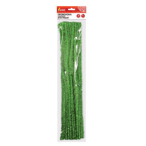 Проволока синельная для творчества "Блестящая", зеленая, 30 шт., 0,6х30 см, ОСТРОВ СОКРОВИЩ, 661542
