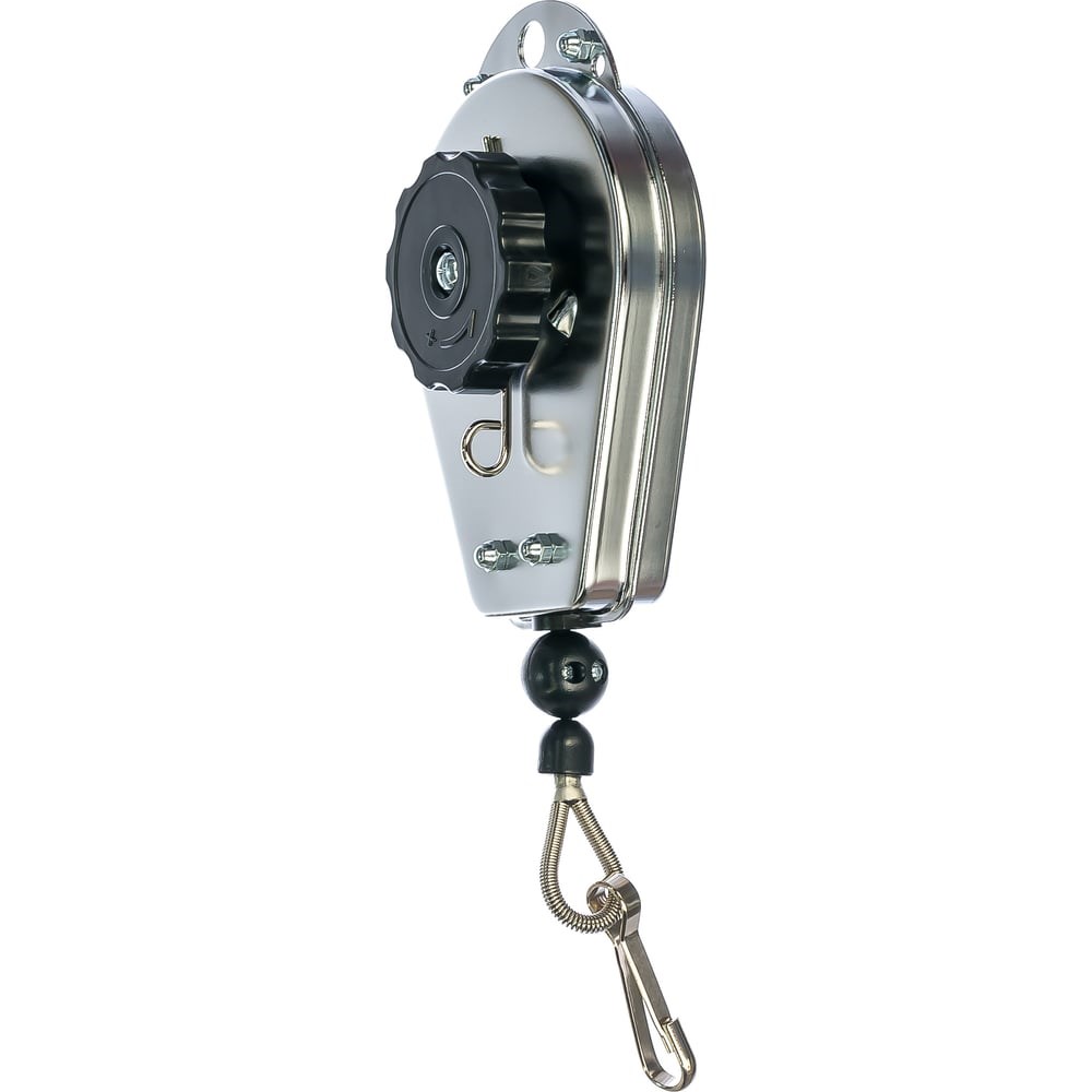 Пружинный подвес-балансир MIGHTY SEVEN SP-104 представляет собой корпус из нержавеющей стали с тросом. Устройство имеет компактный размер и небольшой вес, что способствует легкому хранению. Благодаря специальному крепежному отверстию обеспечивается точность позиционирования аппарата. Стальной трос снабжается крюком с карабином, который служит для надежного крепления груза. Встроенный ограничитель дает возможность зафиксировать груз на необходимом уровне.