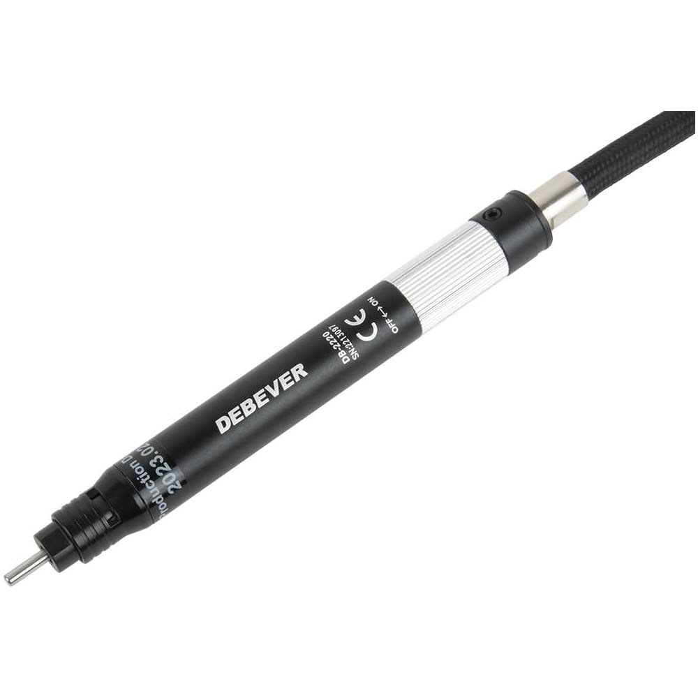 Пневматические машины карандашного типа имеют компактные размеры, малый вес и высокие обороты ( от 35 000 до 100 000 об/мин ). Применяются в разных сферах: в серийных производствах, и на технологических линиях средних и крупных предприятиях с централизованной системой подачи сжатого воздуха. Пневматическая прямая шлифовальная машина (ПШМ) DEBEVER DB-2220 предназначена для операций зачистки и шлифования деталей из различных металлов, металлических сплавов, камня, керамики и прочих материалов, оптимально подходит для обработки конструкций, имеющих труднодоступные участки или угловые соединения. Дополнительные характеристики: Исполнение включения-Поворотное кольцо Расход воздуха (л/мин.)-156 Рабочее давление (бар)-6,2 Выход воздуха-Назад Диаметр воздушного штуцера-1/4" Вес (кг)-0,13 Зажимная цанга-3 мм Размеры (мм)-17,7 x 135 Скорость вращения (об/мин.)-70000 Инструменты, используемые с данной моделью пневмомашины Твердосплавные борфрезы до Ø 3 мм Шлифовальные абразивные головки до Ø 8-13 мм Алмазные шлифовальные головки на оправке до Ø 5,5 мм