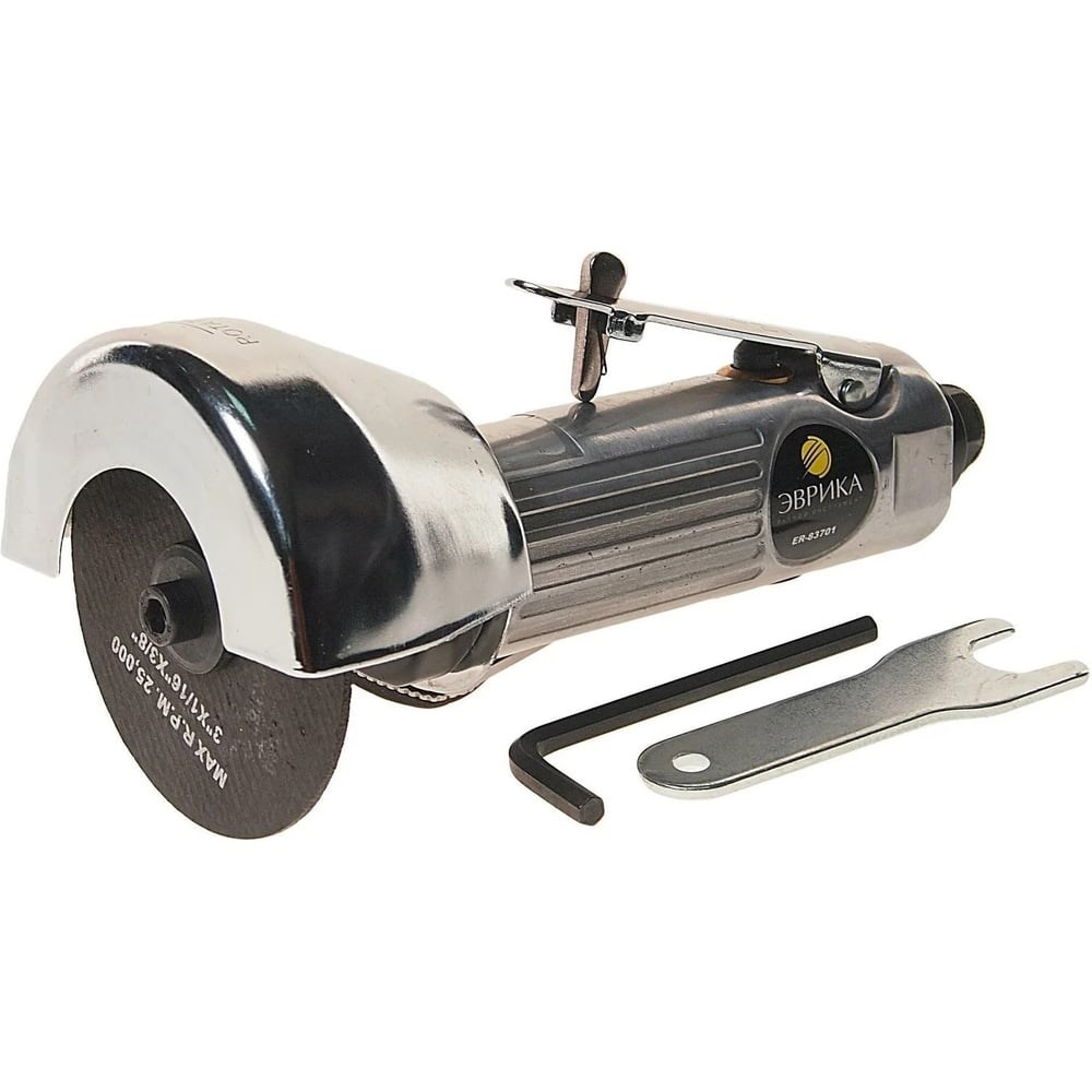 Прямая пневмоотрезная машинка ЭВРИКА ER-83701 подходит для зачистных и отрезных работ. Металлический корпус инструмента устойчив к механическим повреждениям. Специальный кожух защищает пользователя от летящих осколков и пыли. Широкая клавиша "Пуск" удобна для нажатия при любом хвате машинки.