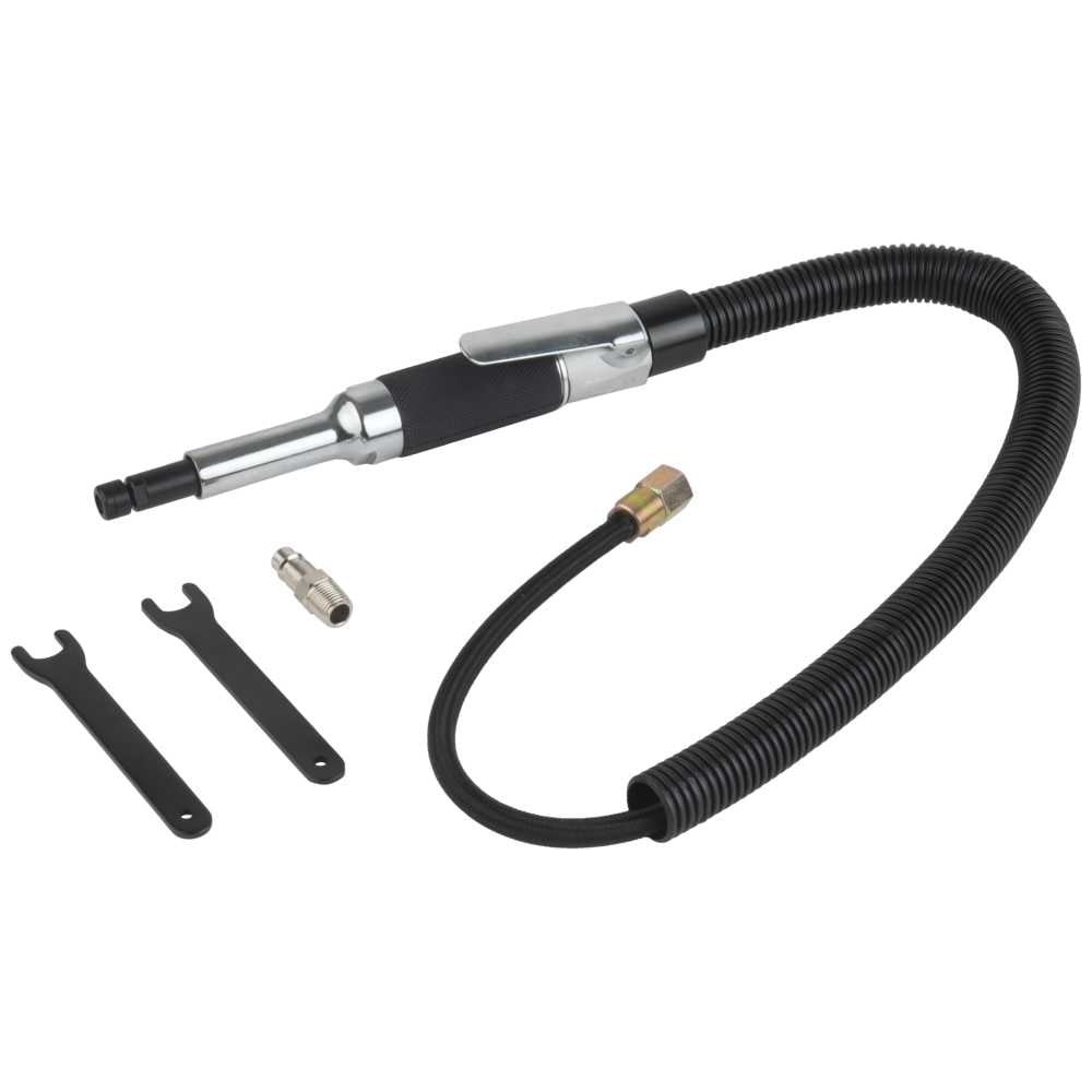 Пневматическая прямая шлифовальная машина (ПШМ) предназначена для операций резания, зачистки и шлифования деталей из различных металлов, металлических сплавов, камня, керамики и прочих материалов. Инструмент оптимально подходит для обработки конструкций, имеющих труднодоступные участки или угловые соединения. Инструменты, используемые с данной моделью пневмомашины: Твердосплавные борфрезы 4 - 6 мм Шлифовальные абразивные головки до 32 мм Шлифовальные втулки (трубки) до 19 мм Круги лепестковые на оправке (КЛО) до 22 мм Войлочные головки на оправке до 6 мм Алмазные шлифовальные головки на оправке 5,5 - 12 мм Малые отрезные/зачистные круги до 30 мм Дополнительные характеристики: Зажимная цанга: 6 мм Скорость без нагрузки: 30 000 об/мин Мощность: 225 Вт Исполнение включения: рычажный Расход воздуха: 200 л/мин Давление воздуха: 6,2 бар Отвод воздуха: назад