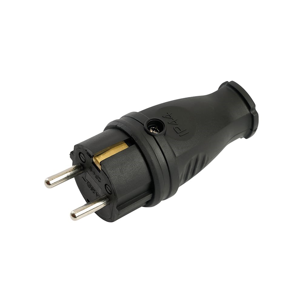 Прямая вилка STEKKER с заземляющим контактом, каучук 250В 16A IP44 черная RPG16-21-441 В 16-001 32748