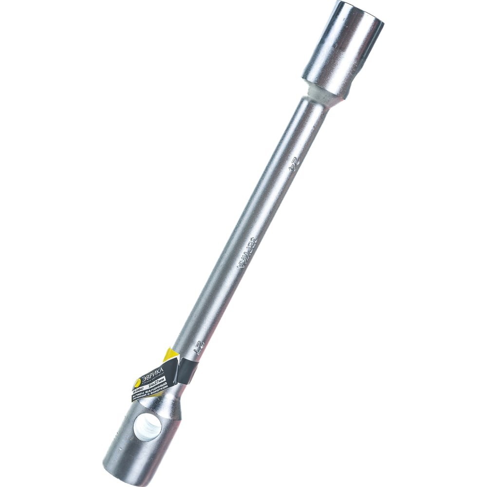 Баллонный прямой ключ ЭВРИКА 24х27мм L=400мм ER-34047 удобен в использовании за счет специальных отверстий для дополнительного рычага. Это позволяет вращать крепеж с небольшим усилием. Компактность позволяет перевозить ключ в багажнике автомобиля.