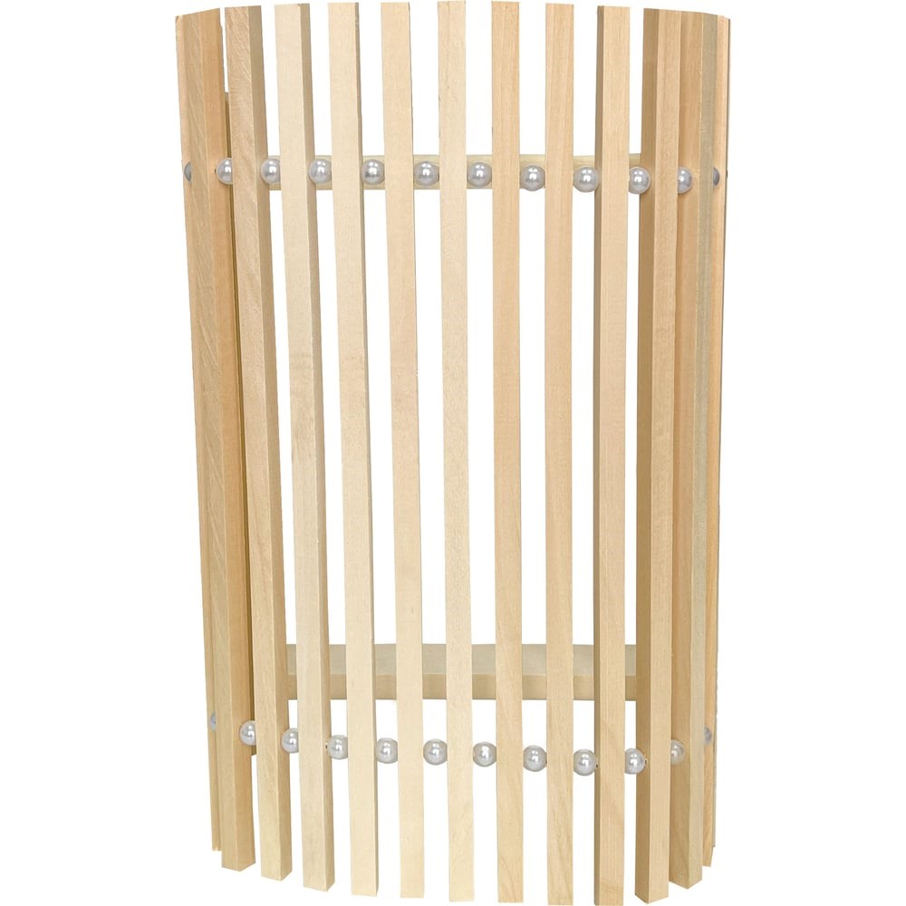 Абажур Бацькина Баня Thin rail прямой, угловой 30770 выполнен из натурального и экологичного дерева - липы, предназначен для установки в угол помещения парной, бани и сауны. Липа - это экологически чистый природный материал, идеально подходящий для помещений с высокой влажностью. Абажур для бани имеет приятную ровную текстуру, не темнеет со временем, не подвергается гниению и плесени. Решетчатая конструкция изделия обеспечивает хорошую вентиляцию и быстрое просыхание. Для бани или сауны создать уют можно за счет множества важных деталей. Абажур для бани угловой поможет организовать грамотное освещение: даст мягкий рассеянный свет, защитит лампу от брызг и механических повреждений. Абажур для освещения, также украсит интерьер беседок, домов или комнат с отделкой в стиле натурального дерева.