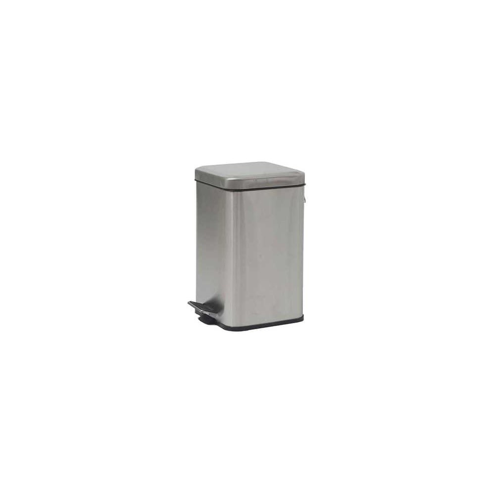 Контейнер для мусора с педалью среднего объема на 12 литров имеет корпус из нержавеющей стали AISI 304 матового оттенка, а также внутренний бак, для удобства пользователя. Ведро оснащено педалью, с помощью которой открывается крышка и приподнимается внутренний контейнер. Форма ведра прямоугольная.