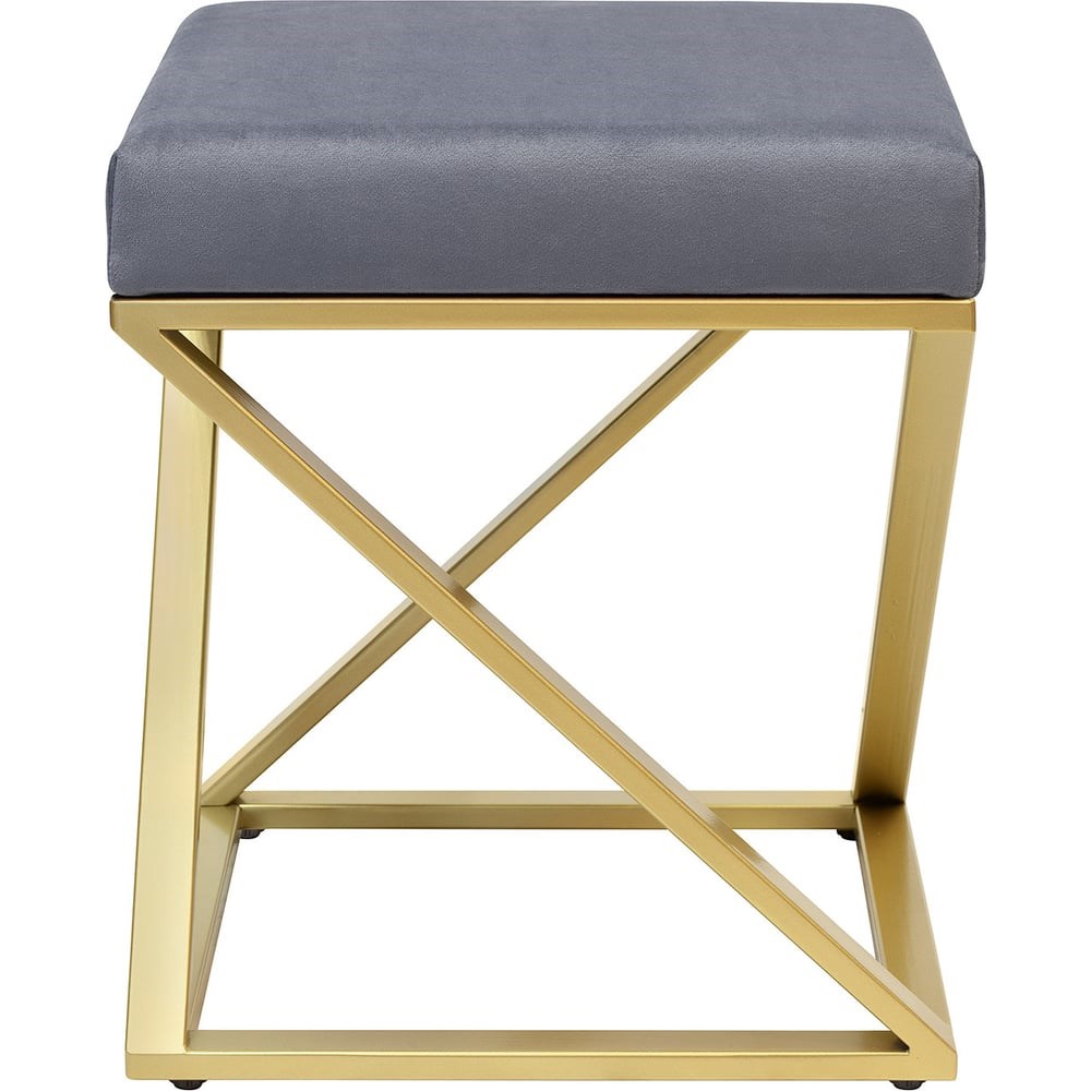 Пуф CHELSEA с золотым основанием и велюровой подушкой.Мягкий пуф подойдет для прихожей, гардеробной, спальни, гостиной, зала и студии, а также хорошо будет смотреться на балконе. Пуф доставляется в собранном виде в надежной упаковке. Характеристики пуфа CHELSEA: • размеры (длина х ширина х высота) 400 x 400 x 450 мм, • вес пуфа – 7,1 кг, • высота подушки – 80 мм, • обивка – искусственный велюр, • наполнитель – пенополиуретан, • максимальная нагрузка – 130 кг. Каркас пуфа изготовлен из стальной профильной трубы 20х20 с полимерным покрытием. Собственное производство гарантирует надежность и эстетику сварных швов металлической мебели. Пуфик с мягкой подушкой понравится ценителям комфорта и лаконичного дизайна. Обивка из бархатистого велюра легко чистится от загрязнений, качественный наполнитель сохраняет форму подушки. Мягкая обивка с высокой износостойкостью, прошла тест Мартиндейла на истираемость — 35 000 циклов. Пуф в прихожую украсит интерьер квартиры, загородного дома, офиса, салона, бара, ПВЗ, кафе, ресторана и студии. Коллекция пуфов отлично сочетается со стеллажами EVA и консолью TORI.