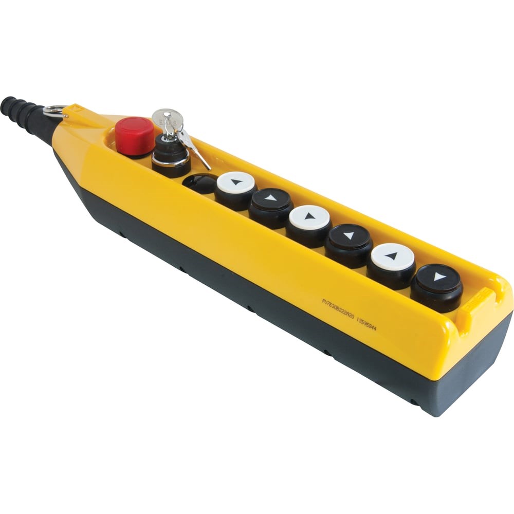 Пульт управления для кранов Emas 9 кнопок, 250 В, 4А PV9E30B222AA20 имеет класс защиты IP65 и прорезиненные кнопки. Это позволяет использовать данную модель в сложных погодных условиях, например под дождем или снегом. Эргономичная форма придает удобство в работе. Корпус изготовлен из прочного пластика армированного стекловолокном и отличается высоким качеством исполнения.