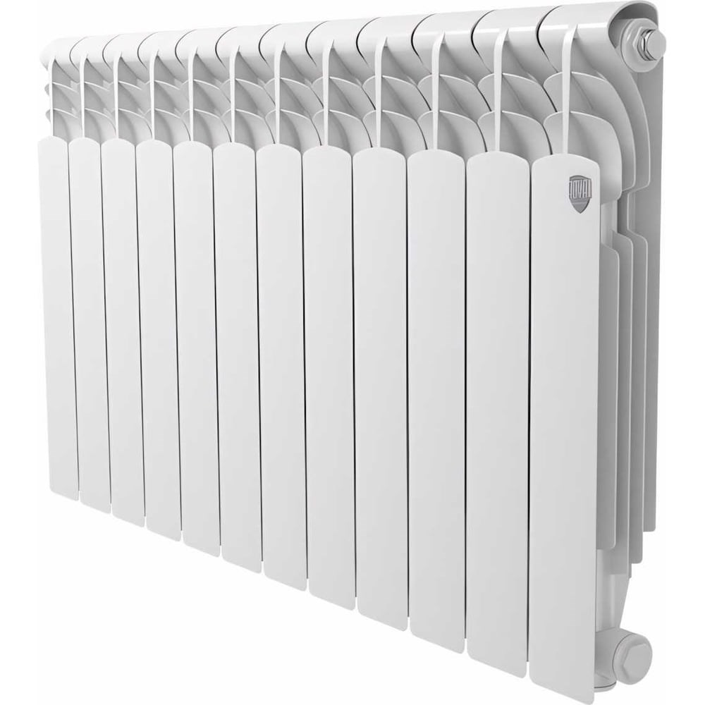 Алюминиевый радиатор Royal Thermo Revolution 500 2.0 - 12 секц. НС-1340187 с революционным соотношением цены и качества. Революционная система оребрения REVOLUTION. Патент №139542. Особая волнообразная форма оребрения модели REVOLUTION повышает теплоотдачу на 3% за счет беспрепятственного прохождения нагреваемого воздуха при движении внутри радиатора. Повышенная мощность, технология POWERSHIFT® Дополнительное оребрение на вертикальном коллекторе секции увеличивает теплоотдачу радиатора на 5%. Такое решение способствует более быстрому обогреву помещений при том же размере и весе секций. Эффективная защита от гидроударов Запатентованная инновационная заглушка повышенной прочности VITO RIMOLDI с нано полимерной мембраной и использование вертикальных коллекторов круглого сечения гарантирует надежную работу алюминиевых радиаторов Royal Thermo в системах, подверженных частым гидроударам. Oxsilan® 9807 – новое поколение экологически чистого покрытия без тяжелых металлов и фосфатов Oxsilan® 9807 наносится на секцию радиатора перед покраской и за счет улучшенной адгезии лакокрасочного покрытия повышает антикоррозийную стойкость и долговечность радиаторов. Сверхстойкая 7-этапная NANO-покраска TECNOFIRMA® Нанесение экологически чистых нано-красок AkzoNobel (Нидерланды) и FreiLacke (Германия) в семь этапов гарантирует стойкость к механическим повреждениям и обеспечивает долговечность покрытия радиатора в помещениях с повышенной влажностью.