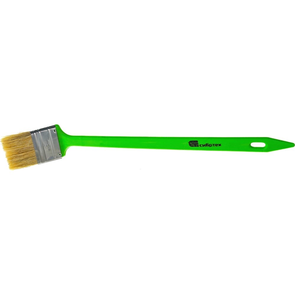 Радиаторная кисть Сибртех 83857 шириной 50 мм, с натуральной щетиной и пластиковой ручкой, позволяет окрашивать радиаторы, трубы, проволочные конструкции. Особенно удобна для покраски углов и стыков пола или потолка со стенами. Удлиненная ручка облегчает проведение малярных работ. Натуральная щетина с добавлением искусственного ворса устойчива к деформации и сохраняет упругость и краскообменные качества при использовании масляных красок и эмалей.