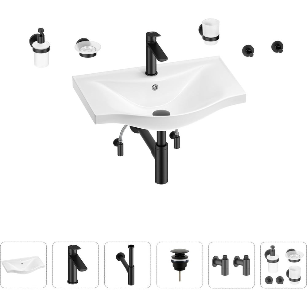 Раковина для ванной Wellsee Bisou в наборе 9 в 1 201007282