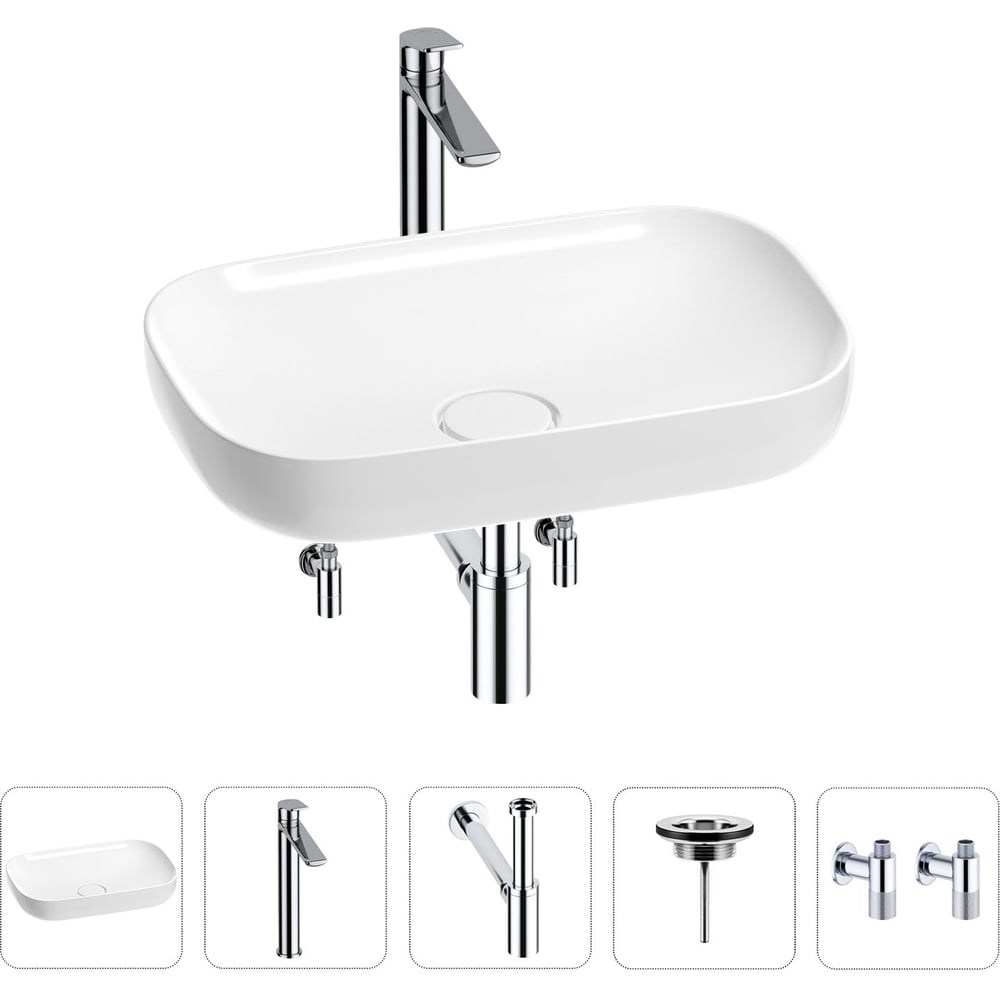 Комплексное предложение по специальной цене от Wellsee. РАКОВИНА Тонкостенная накладная раковина Wellsee Croquis станет лаконичным завершающим штрихом интерьерного пространства ванной комнаты. Наличие керамического клапана на слив деликатно подчеркнет эстетику умывальной зоны, а элегантный белый цвет добавит света и воздушности внутренней отделке санузла. Простой монтаж, компактность и удобство эксплуатации – неоспоримые преимущества накладной конструкции. СМЕСИТЕЛЬ Надежный латунный смеситель с испанским картриджем 35 мм обеспечивает высокую точность управления напором и температурой воды, благодаря которому наслаждаться плавным скольжением ручки и мягким ходом смесителя можно более 10 лет. Регулируемый аэратор Neoperl с технологией AIRflow² позволяет скорректировать направление потока, уменьшает разбрызгивание и приглушает шум воды. ВАННАЯ КОМНАТА В СТИЛЕ WELLSEE Дизайнерская сантехника для умывальной зоны изготовлена в едином стиле, прекрасно дополняет друг друга и создает органичный тандем в широкой линейке цветовых решений. Завершить современный интерьер ванной комнаты можно с помощью сифона, донного клапана, угловых вентилей (2 шт), набора аксессуаров (5 шт) и элегантными зеркалами 7 Rays' Spectrum. Гарантируем 100% качество, целостность изделий и полный комплект гарантийных документов на покупку!