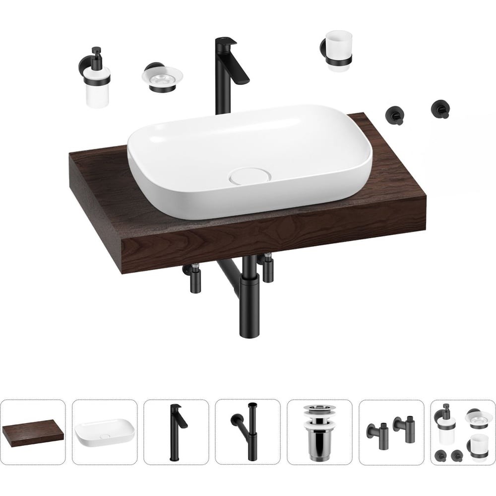 Комплексное предложение по специальной цене от Wellsee. СТОЛЕШНИЦА Основа столешницы из дерева Genuine Tree – высококачественная импрегнированная плита МДФ, пропитанная специальным составом для усиления стойкости материала и максимальной защиты от влаги, перепадов температур, грибка и плесени. Максимальная влагостойкость достигается за счет укрепления торцов изделия массивом дерева. Далее поверхность столешницы покрывается натуральным шпоном и дополнительно обрабатывается бейцем, что позволяет получать уникальную для каждого покупателя текстуру и выразительный цвет. РАКОВИНА Тонкостенная накладная раковина Wellsee Croquis станет лаконичным завершающим штрихом интерьерного пространства ванной комнаты. Наличие керамического клапана на слив деликатно подчеркнет эстетику умывальной зоны, а элегантный белый цвет добавит света и воздушности внутренней отделке санузла. СМЕСИТЕЛЬ Надежный латунный смеситель с испанским картриджем 35 мм обеспечивает высокую точность управления напором и температурой воды, благодаря которому наслаждаться плавным скольжением ручки и мягким ходом смесителя можно более 10 лет. Регулируемый аэратор Neoperl с технологией AIRflow² позволяет скорректировать направление потока, уменьшает разбрызгивание и приглушает шум воды. ВАННАЯ КОМНАТА В СТИЛЕ WELLSEE Завершить современный интерьер ванной комнаты можно с помощью сифона, донного клапана, угловых вентилей (2 шт), набора аксессуаров (5 шт) и элегантными зеркалами 7 Rays' Spectrum.
