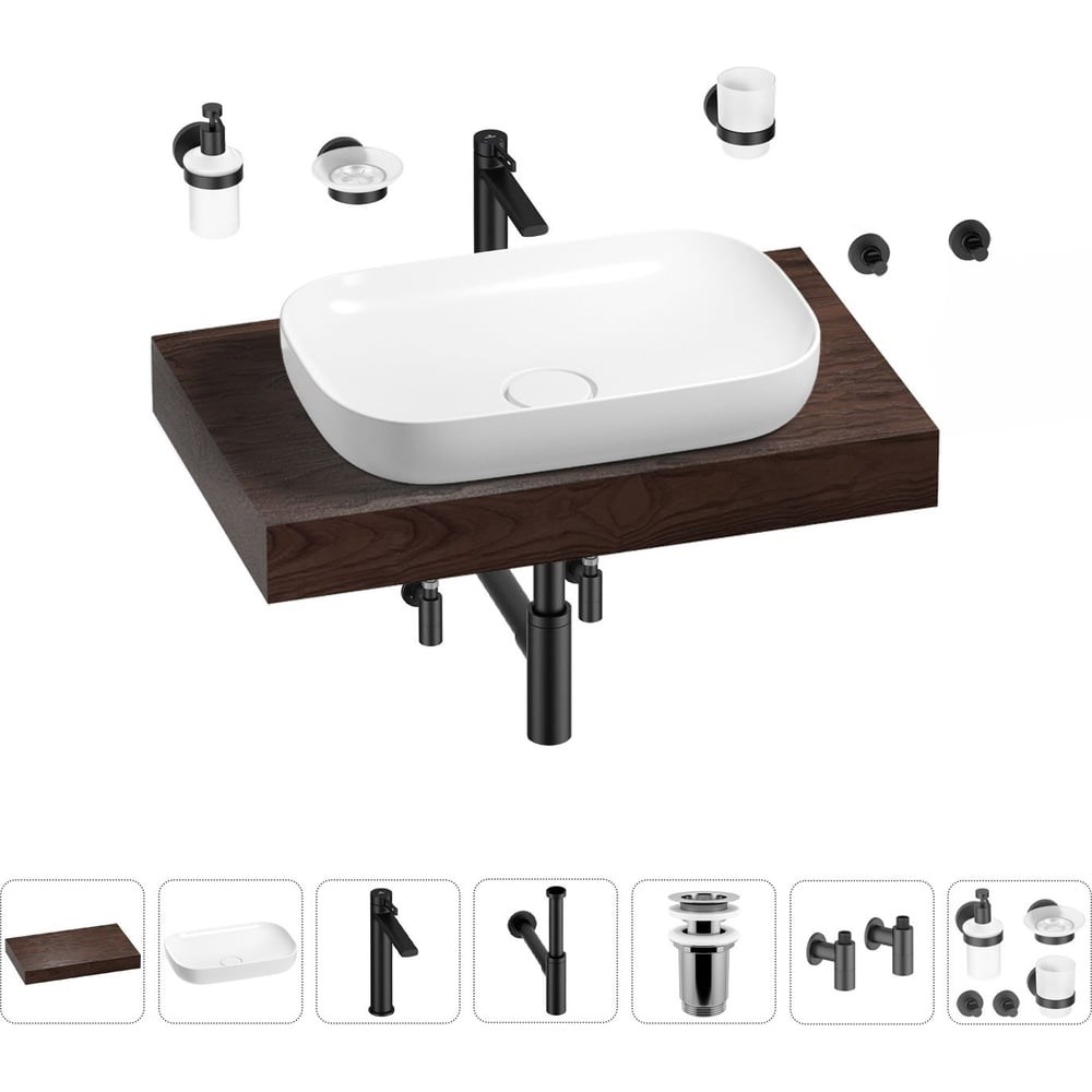 Комплексное предложение по специальной цене от Wellsee. СТОЛЕШНИЦА Основа столешницы из дерева Genuine Tree – высококачественная импрегнированная плита МДФ, пропитанная специальным составом для усиления стойкости материала и максимальной защиты от влаги, перепадов температур, грибка и плесени. Максимальная влагостойкость достигается за счет укрепления торцов изделия массивом дерева. Далее поверхность столешницы покрывается натуральным шпоном и дополнительно обрабатывается бейцем, что позволяет получать уникальную для каждого покупателя текстуру и выразительный цвет. РАКОВИНА Тонкостенная накладная раковина Wellsee Croquis станет лаконичным завершающим штрихом интерьерного пространства ванной комнаты. Наличие керамического клапана на слив деликатно подчеркнет эстетику умывальной зоны, а элегантный белый цвет добавит света и воздушности внутренней отделке санузла. СМЕСИТЕЛЬ Надежный латунный смеситель с испанским картриджем 35 мм обеспечивает высокую точность управления напором и температурой воды, благодаря которому наслаждаться плавным скольжением ручки и мягким ходом смесителя можно более 10 лет. Регулируемый аэратор Neoperl с технологией AIRflow² позволяет скорректировать направление потока, уменьшает разбрызгивание и приглушает шум воды. ВАННАЯ КОМНАТА В СТИЛЕ WELLSEE Завершить современный интерьер ванной комнаты можно с помощью сифона, донного клапана, угловых вентилей (2 шт), набора аксессуаров (5 шт) и элегантными зеркалами 7 Rays' Spectrum.