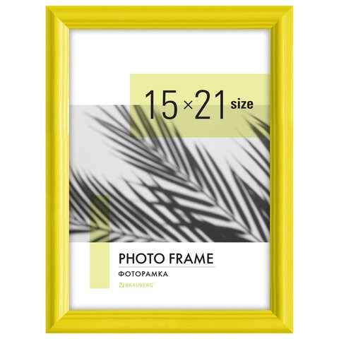 Рамка 15х21 см небьющаяся, багет 17,5 мм, пластик, BRAUBERG "Colorful", желтая, 391245