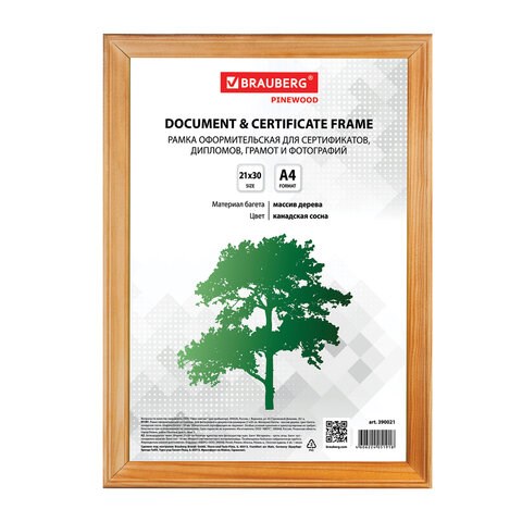 Рамка 21х30 см, дерево, багет 18 мм, BRAUBERG "HIT", канадская сосна, стекло, 390021