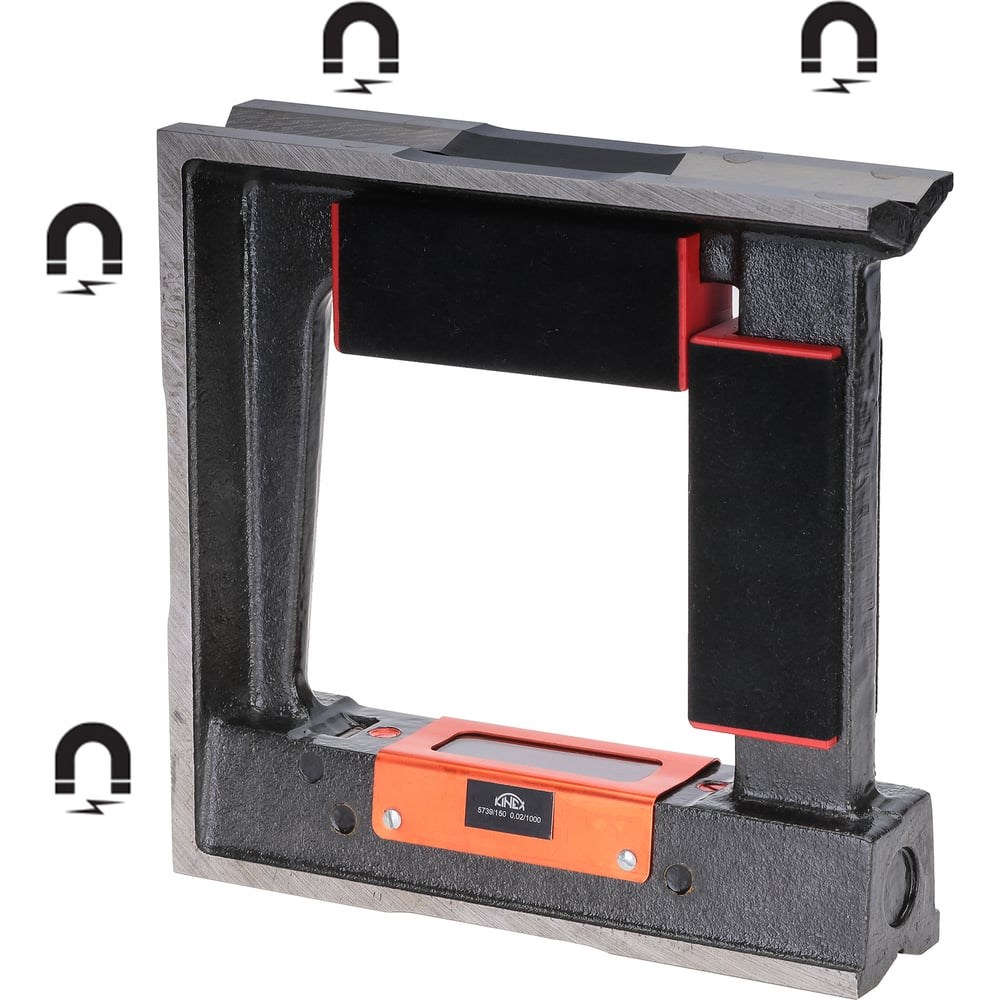 Рамный магнитный уровень Kinex (K-MET) 150x150 мм, 0.02 мм 5091-02-150 используется для контроля горизонтального и вертикального расположения плоских и цилиндрических поверхностей их прямолинейности и плоскостности. Выполнен в виде квадрата, что позволяет измерять вертикальные и горизонтальные отклонения при наличии одного глазка Прибор имеет прочную ровную раму с отполированными поверхностями, выполненную из углеродистой стали, в которую встроена ампула со шкалой. Ампулы наполнены спиртом или эфиром, внутри свободно перемещается пузырек воздуха. По отклонению пузырька от центра определяется параллельность расположения поверхности. Под ценой деления понимают наклон уровня, соответствующий перемещению пузырька продольной ампулы на одной деление шкалы, выраженной в миллиметрах на 1 метр. Стандарт: CSN255739-1 Цена деления: 0,02мм/м Погрешность: ±0,006