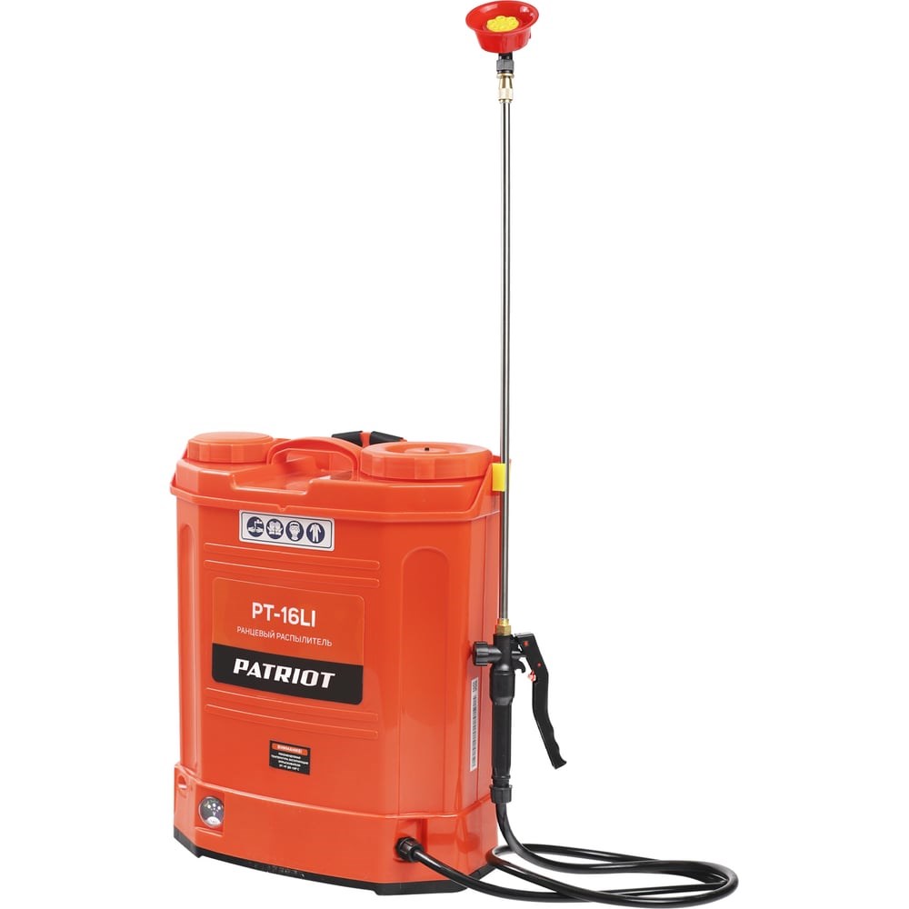 Ранцевый аккумуляторный распылитель PATRIOT PT-16LI 755302520 используется в садоводстве для равномерного орошения растений и обработки удобрениями, в быту для мытья стен и машин. Работает от литий-ионного аккумулятора напряжением 12 В емкостью 8 А*ч. Благодаря ранцевому исполнению, отличается удобством транспортировки. Объем бака: 16 литров. Длина брандспойта составляет 60 см (без ручки).
