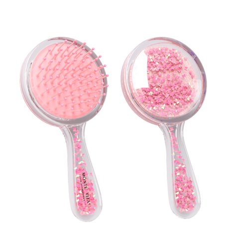 Расческа для волос массажная 15х7 см, с блестками прозрачный/розовый, MONTE VITA (МОНТЕ ВИТА), 457424