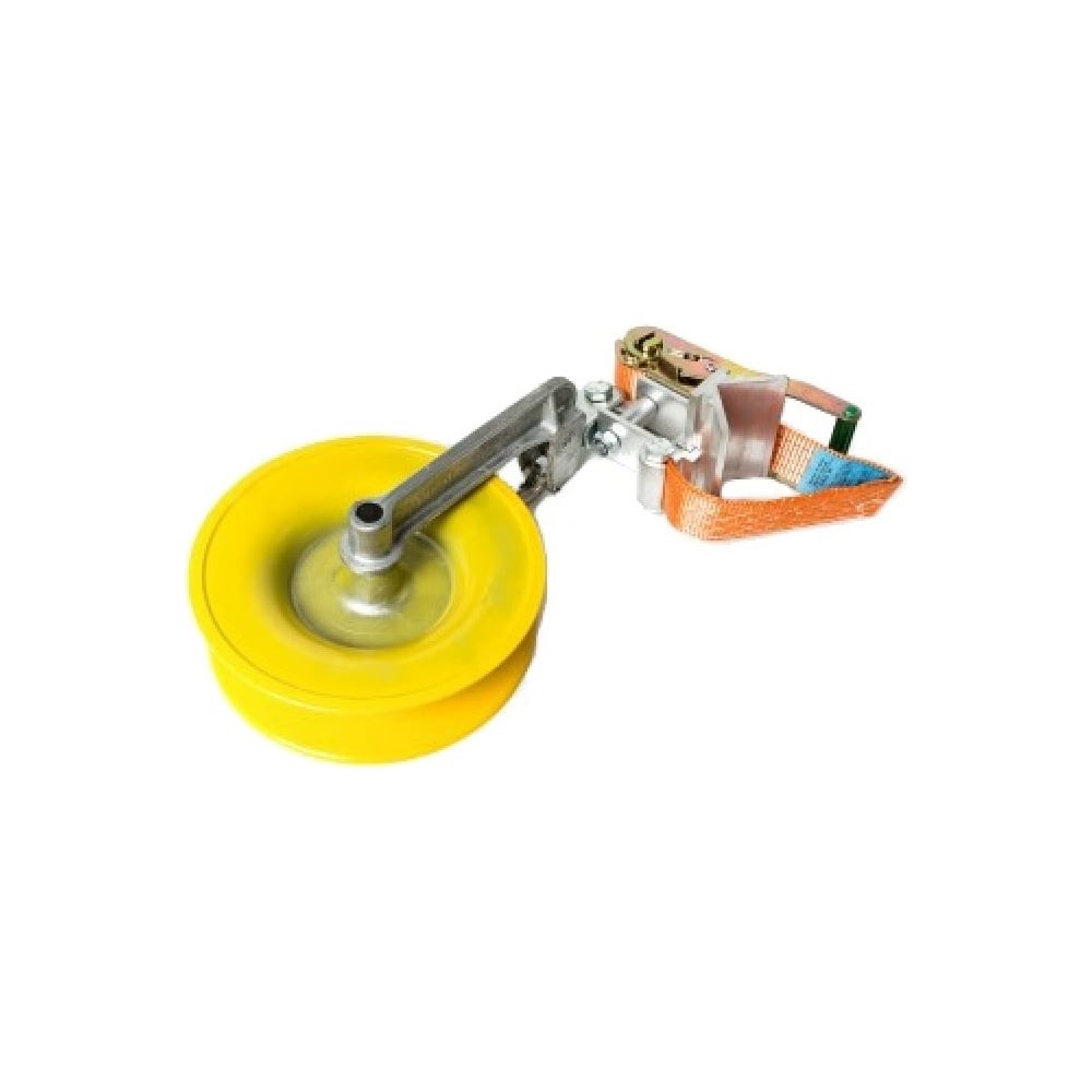 Применяется при монтаже СИП при строительстве ВЛ. Раскатка и протяжка СИП по трассе для его защиты от повреждений должна выполняться с применением каната-лидера и раскаточных роликов.Ролик RT 5 крепится с помощью ремня на концевых опорах ВЛ, на угловых анкерных опорах и на промежуточных опорах с большим углом поворота.