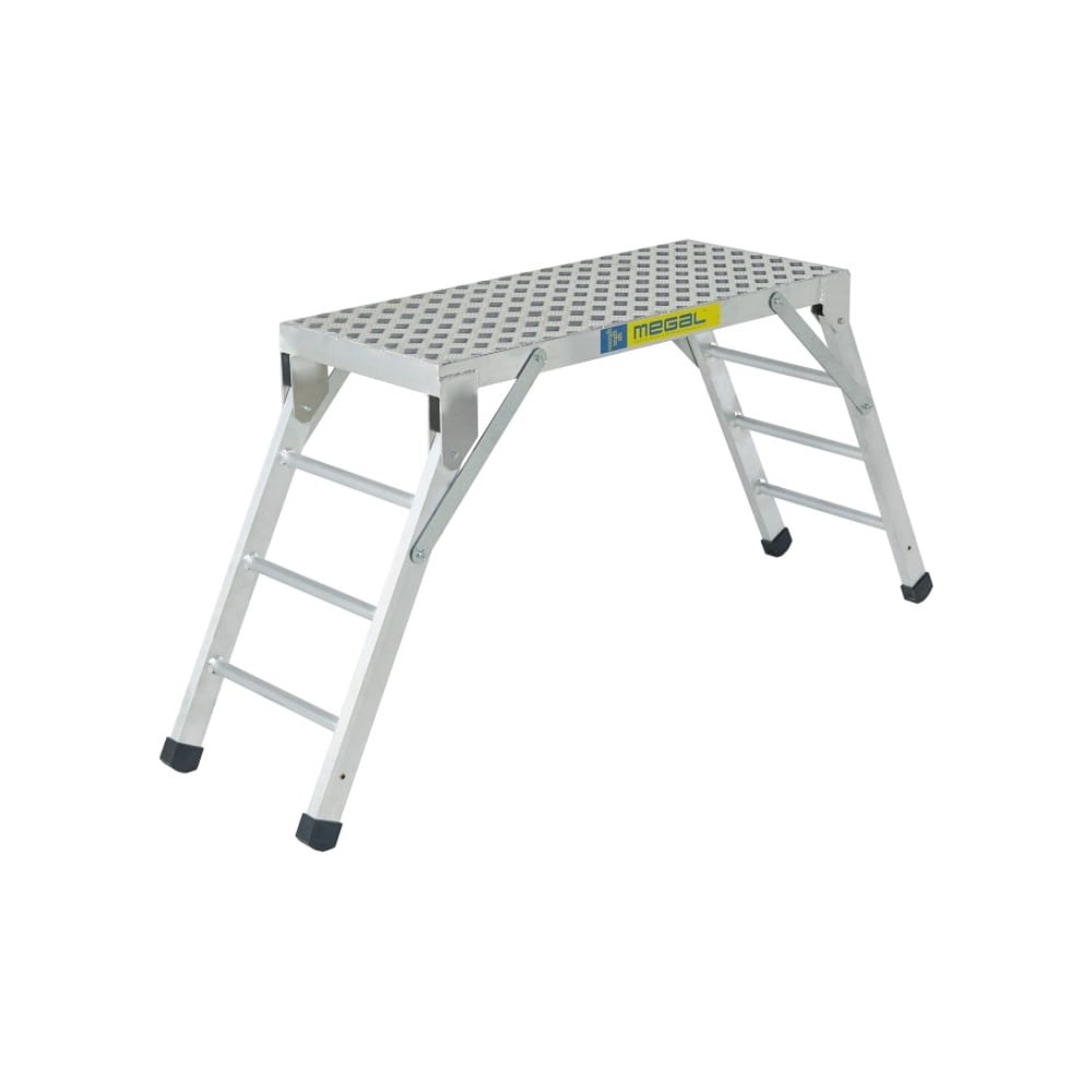 Раскладные алюминиевые подмости MEGAL ПРА-1,2 (1,4х0,5) 4687201845171 идеально подходят для всех видов работ, требующих обширной площадки для ног. Модель обладает следующими характеристиками: Двусторонний подъем. Прочная алюминиевая площадка с противоскользящими насечками. Обрезиненные наконечники, щадящие пол. Компактность при хранении и транспортировке.
