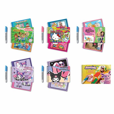 Раскраска многоразовая водная с маркером, лицензия, АССОРТИ, А5, 140х210 мм, 12 стр., гребень, CENTRUM